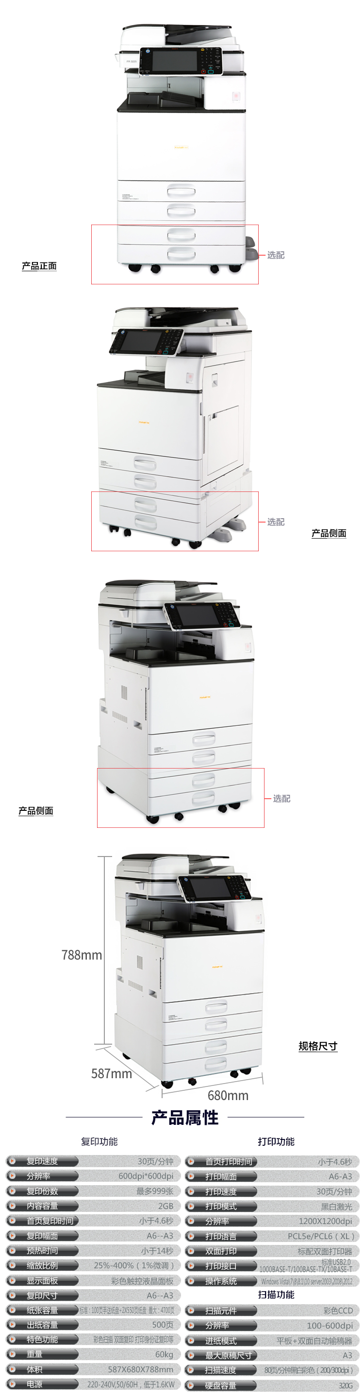 • 商品名称:方正(Founder)FR-3230 A3多功能黑白数码复合机 扫描复印机打印机 双层纸盒+双面输稿器 原价:26900元