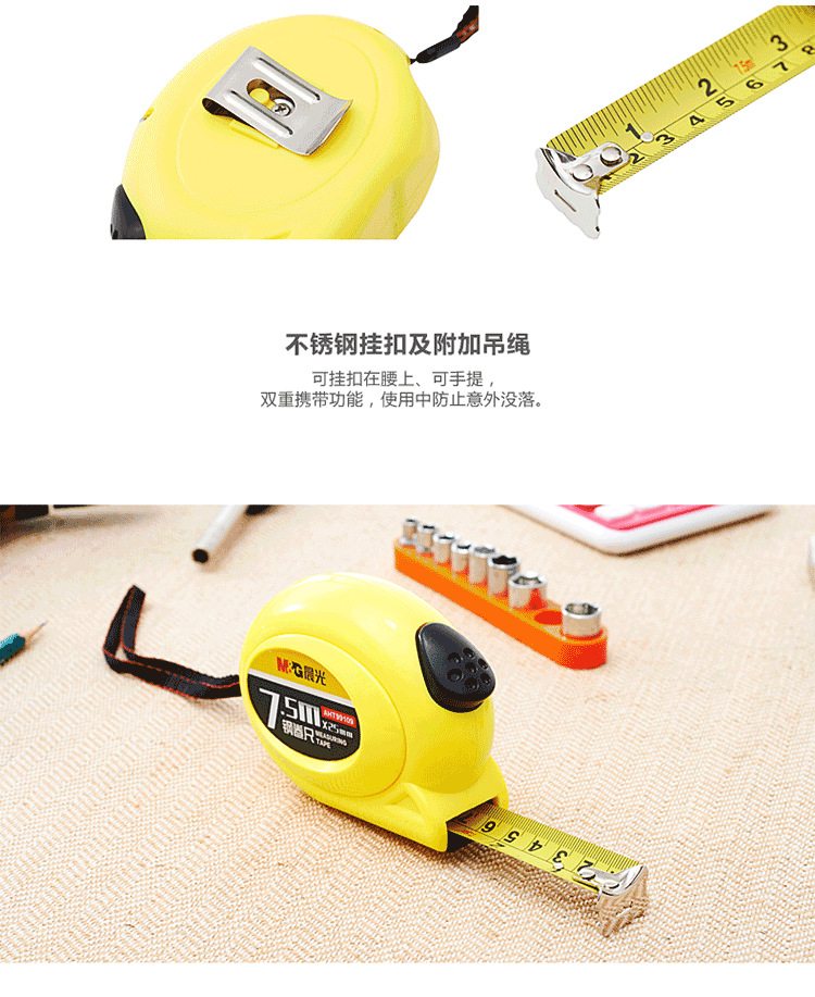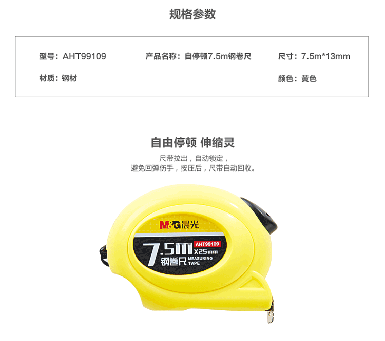 • 商品名称:晨光(M&G)AHT991099 自停顿钢卷尺米尺 7.5m 黄色