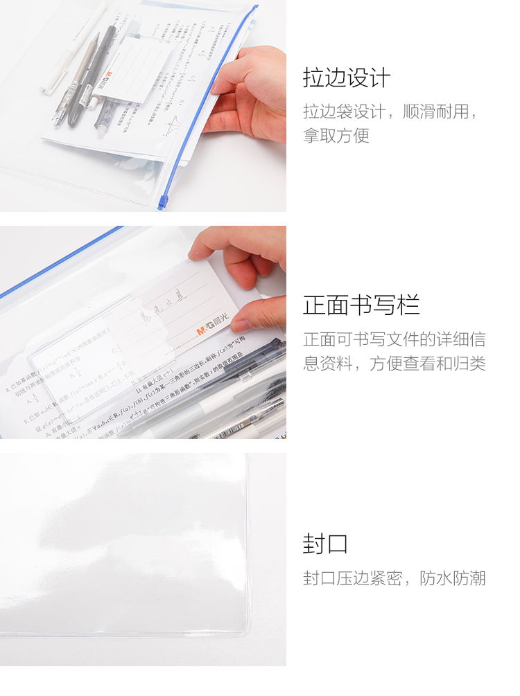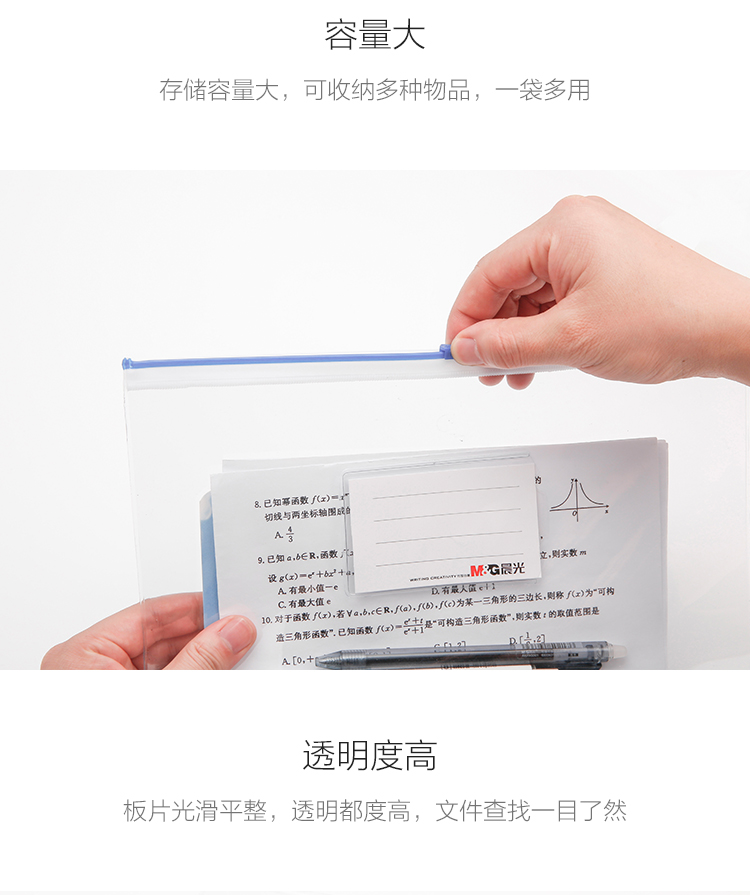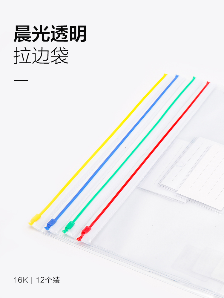 • 商品名称:晨光(M&G)ADM94502 16K拉边袋文件资料袋PVC透明 12个/包 颜色随机