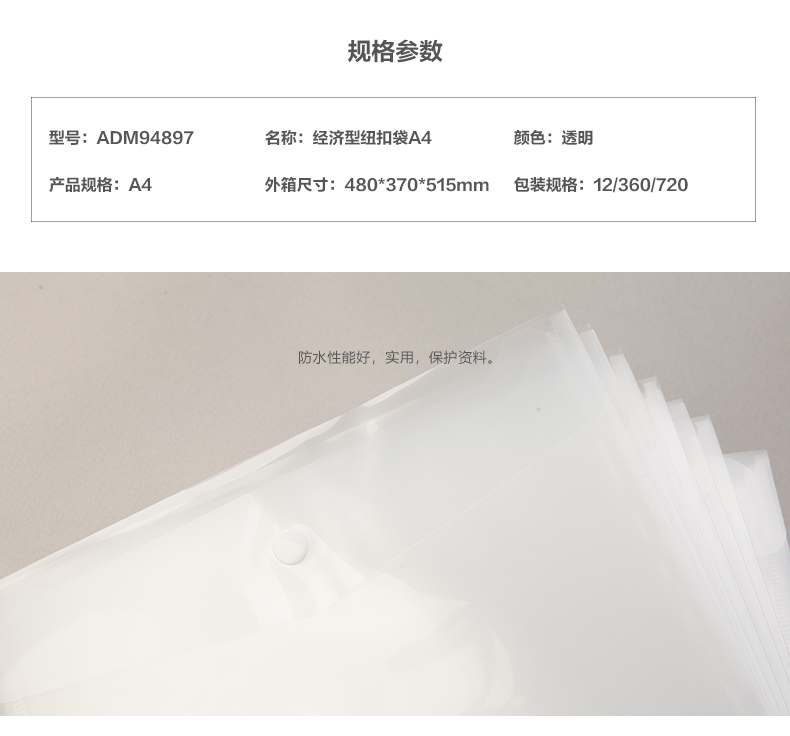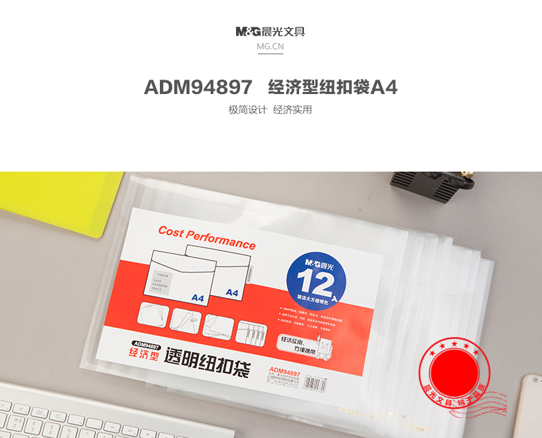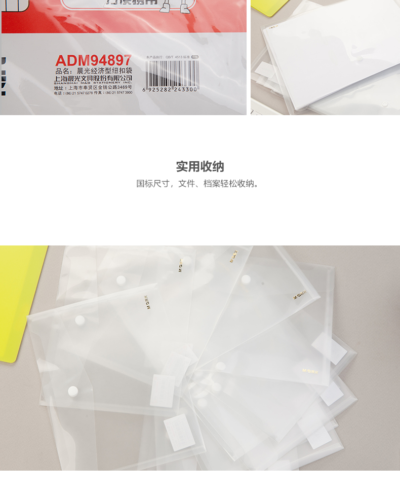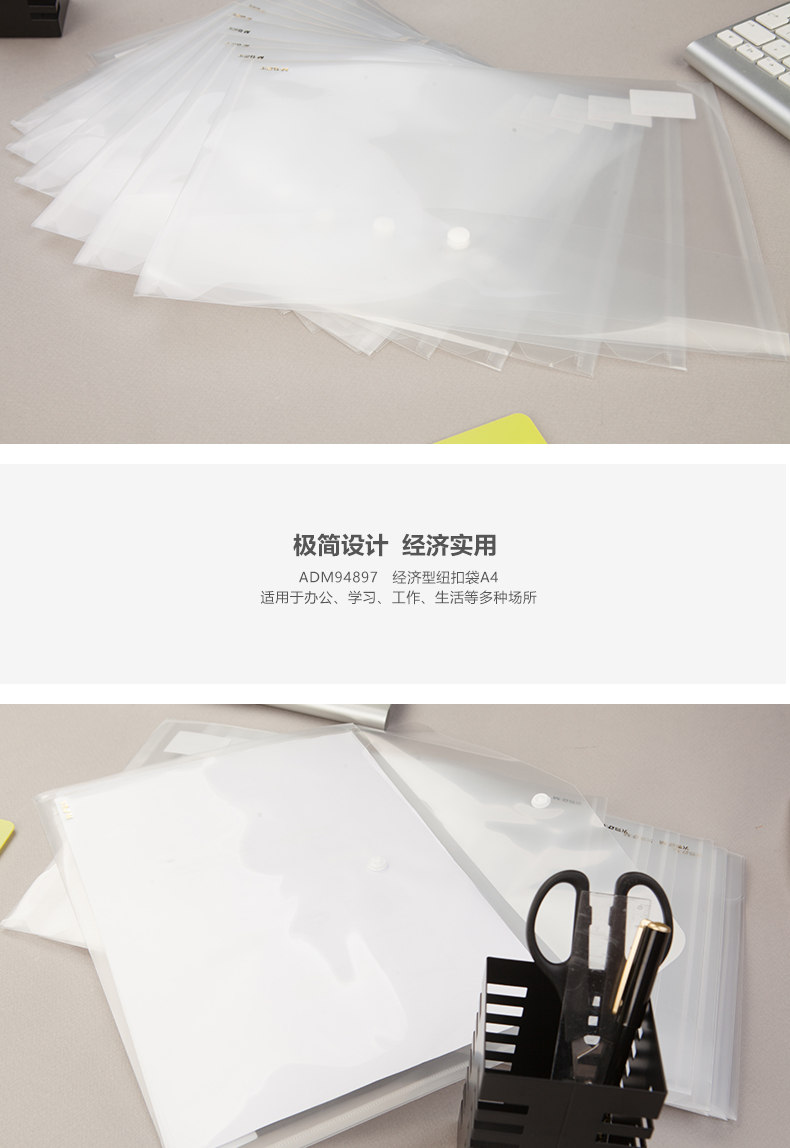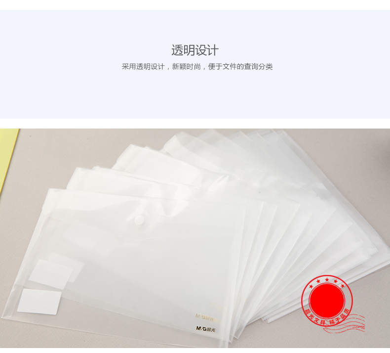 • 商品名称:晨光(M&G) ADM94897 A4经济型纽扣袋 透明按扣文件袋 12个/包 12个/包