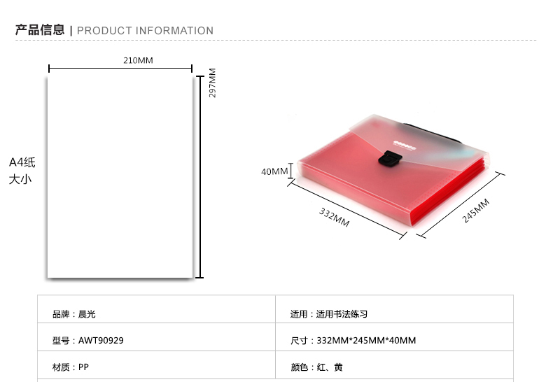 • 商品名称:晨光(M&G) AWT90929 A4办公手提风琴包资料包文件包 12格 颜色随机
