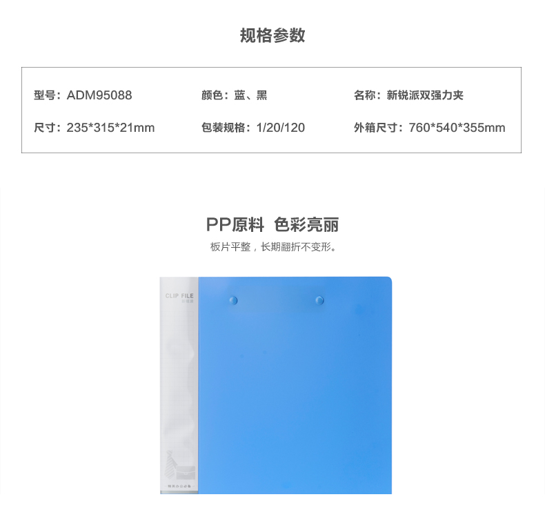• 商品名称:晨光(M&G) ADM95088 A4新锐双强力文件夹资料夹 蓝色