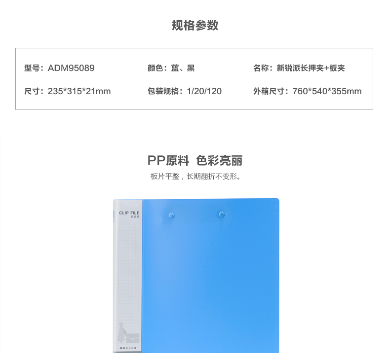 • 商品名称:晨光(M&G) ADM95089 A4新锐长押+板夹文件夹资料夹 蓝色