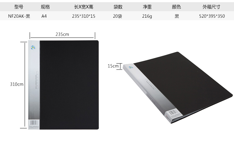 • 商品名称:齐心(Comix) NF20AK A4/20页资料册/文件册 黑色