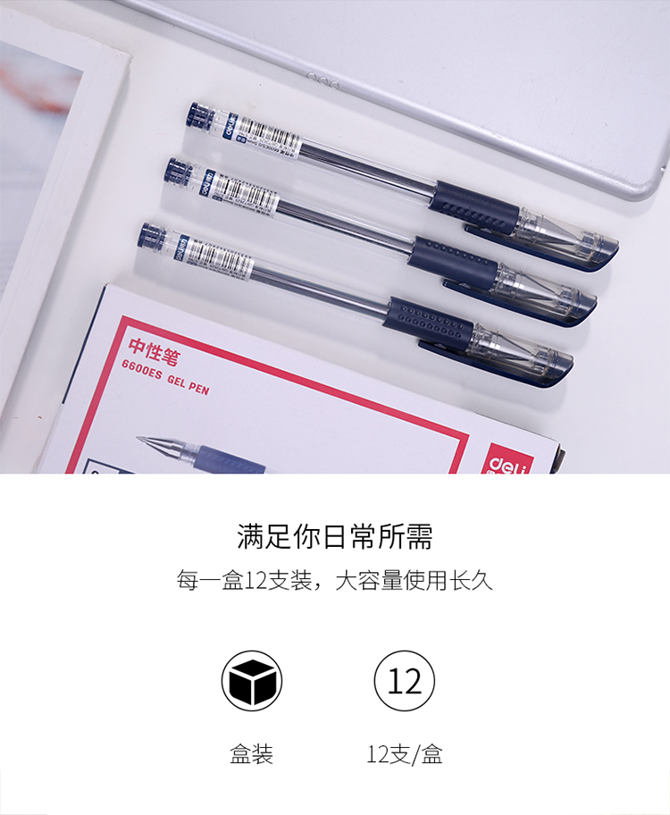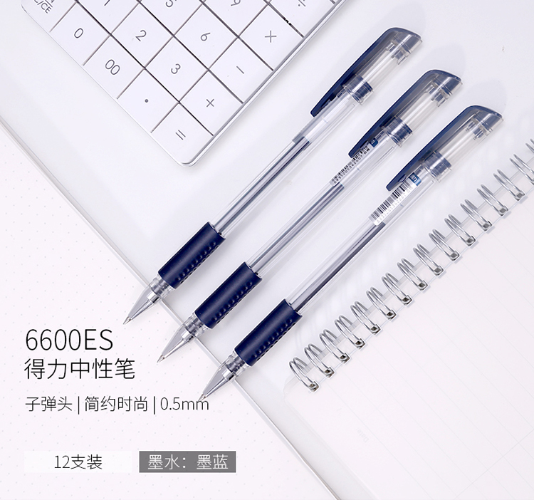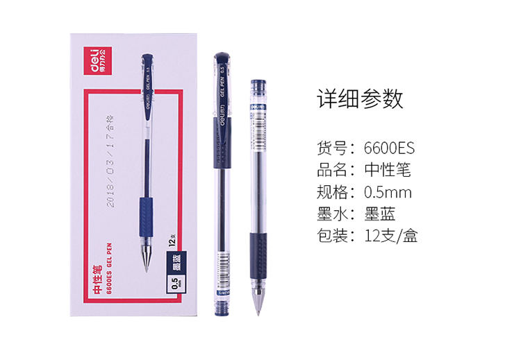 • 商品名称:得力(deli)6600ES 经典办公中性笔子弹头水笔签字笔 0.5mm 墨蓝色 12支/盒