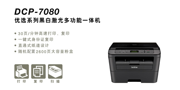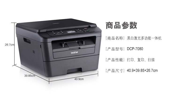 • 商品名称:兄弟(brother) DCP-7080 A4黑白激光多功能一体机(打印、复印、扫描)