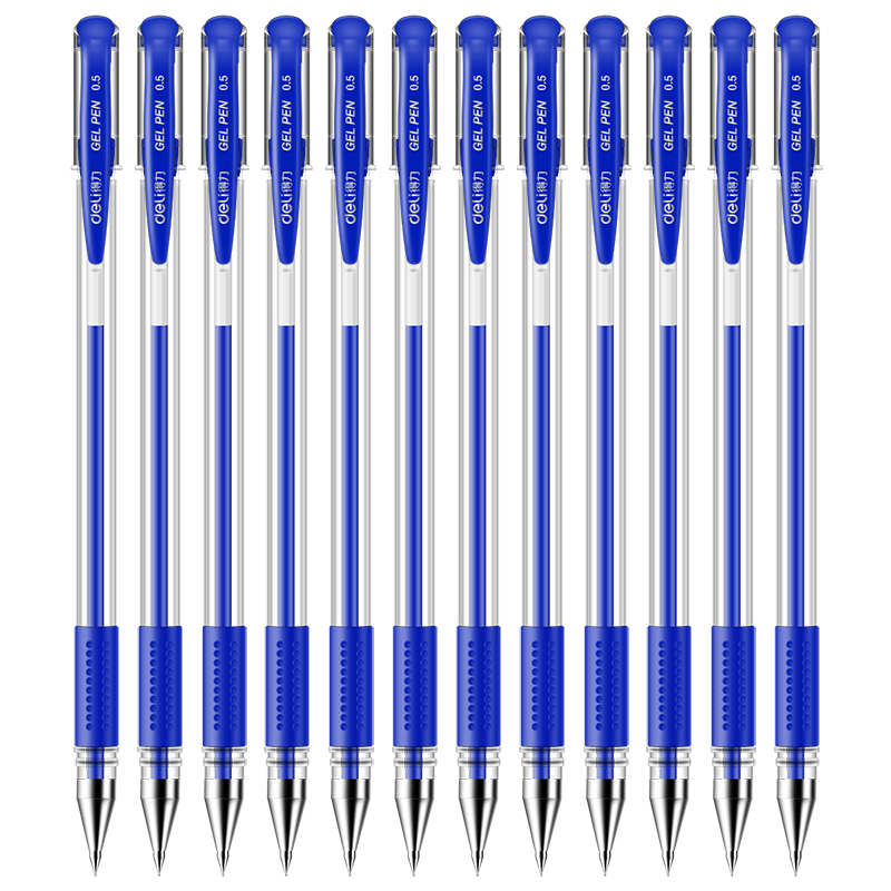 得力(deli)6600ES 经典办公中性笔子弹头水笔签字笔 0.5mm 12支/盒 蓝色