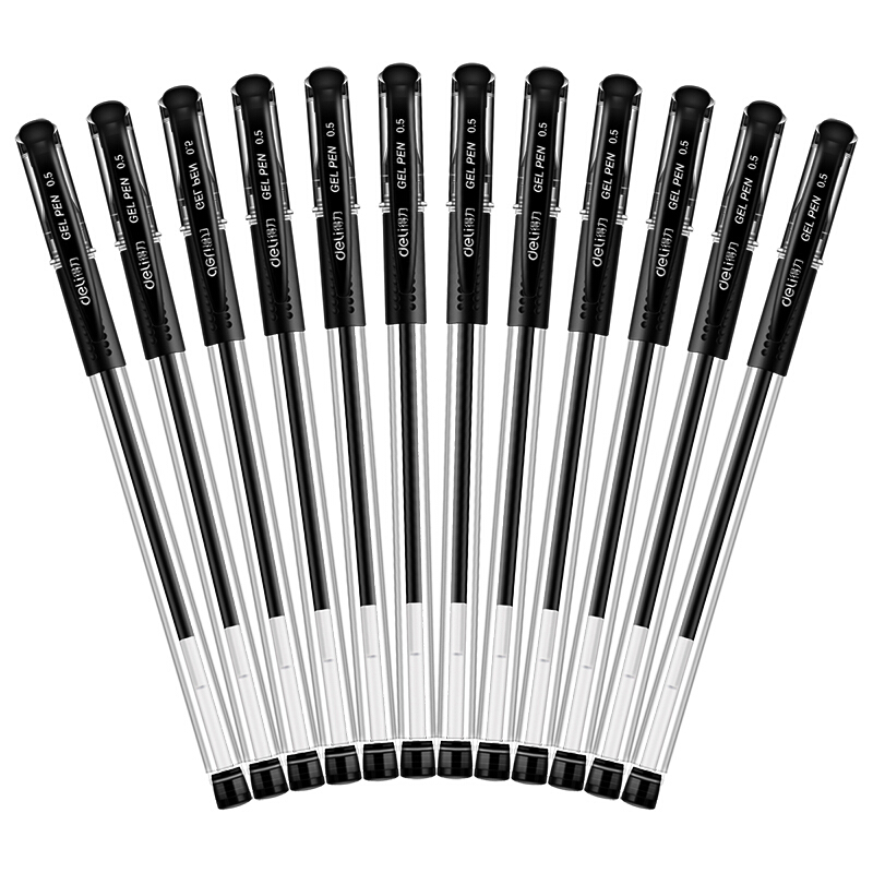 得力(deli)6600ES 经典办公中性笔子弹头水笔签字笔 0.5mm 12支/盒 黑色