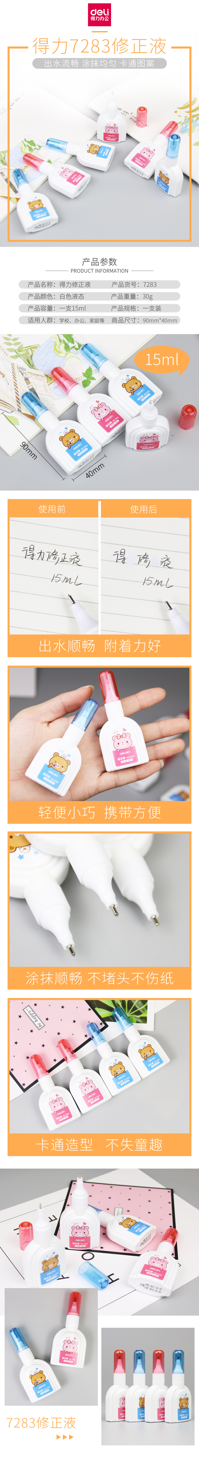 • 商品名称:得力(deli) 7283 卡通图案修正涂改液/修正液 15ml 颜色随机
