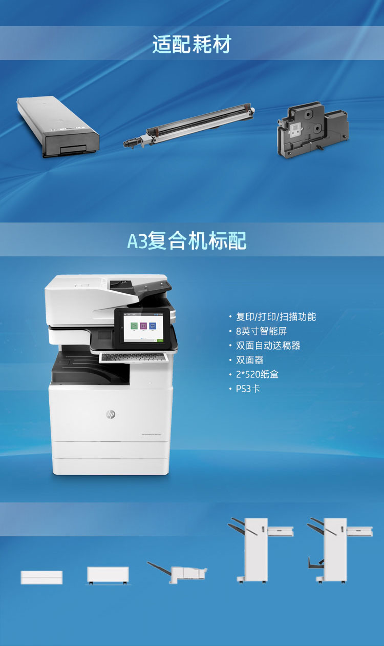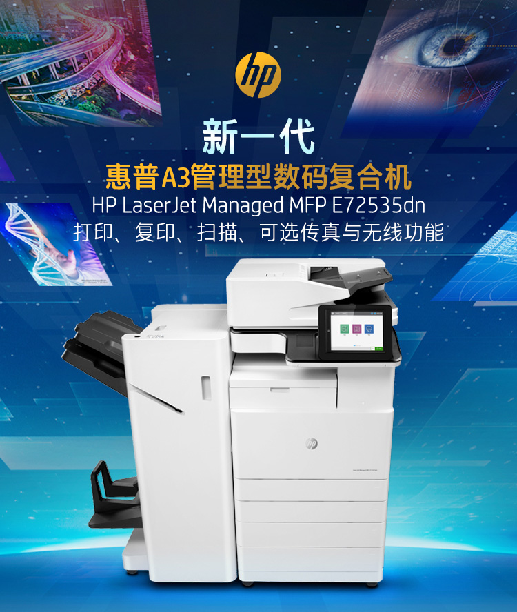• 商品名称:惠普(HP)MFP E72535dn 管理型数码复合机(打印、复印、扫描;传真可选)标配双面器+双面输稿器+双纸盒+工作台