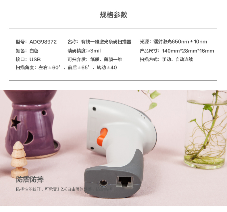 • 商品名称:晨光(M&G) ADG98972 晨光(M&G) ADG98972 固定式有线一维激光条码扫描器