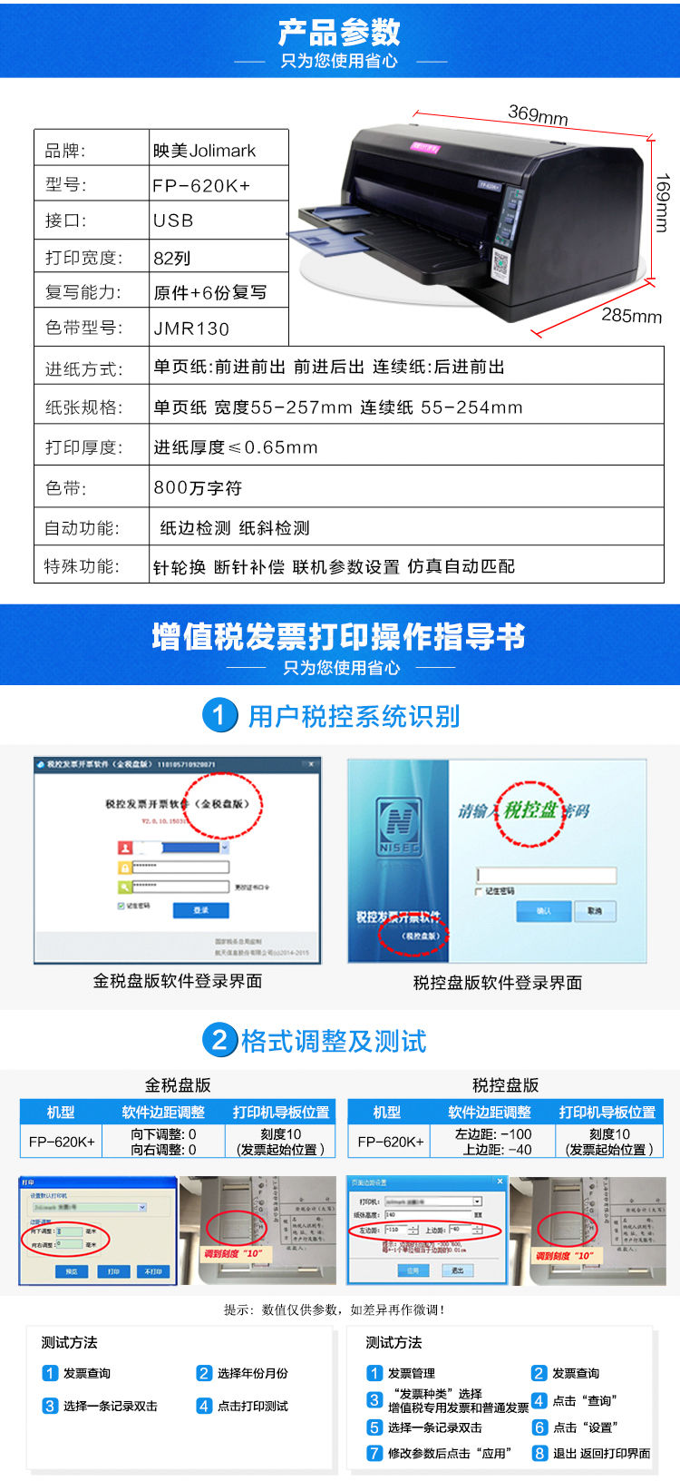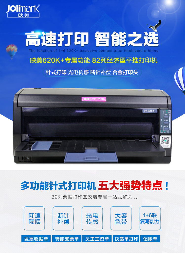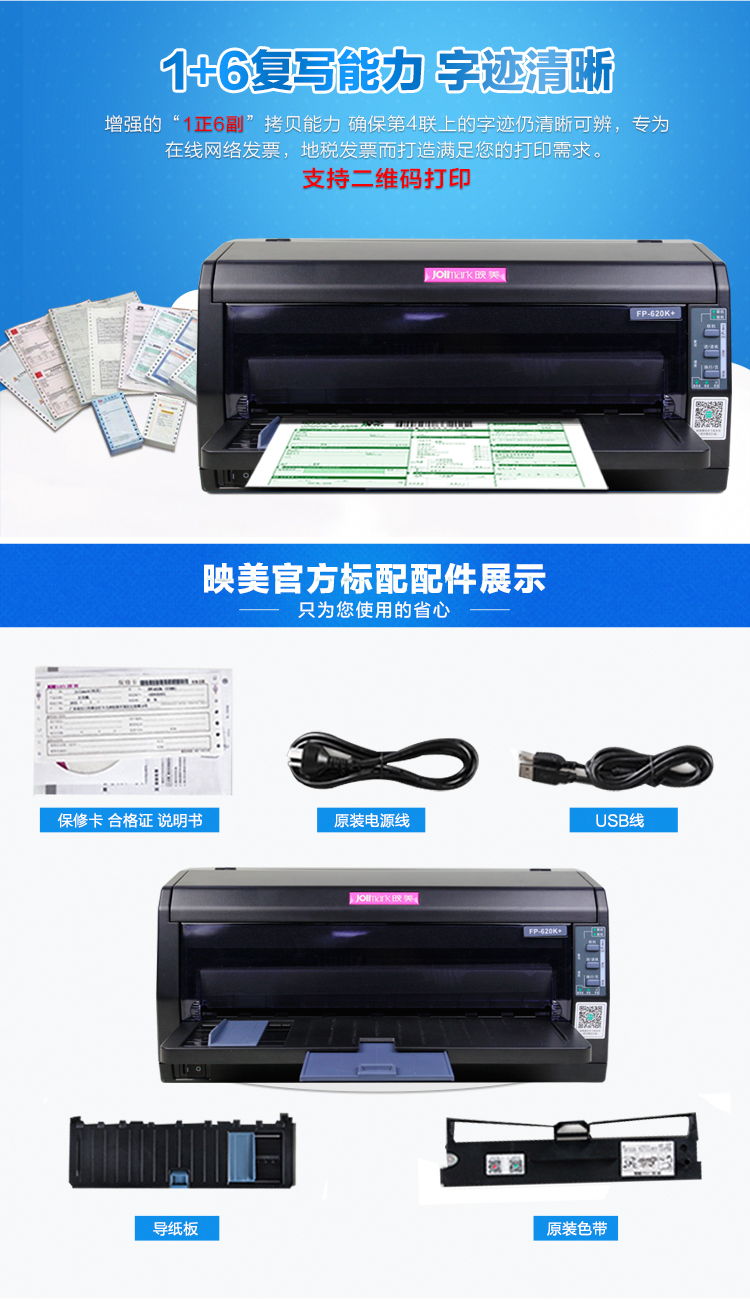 • 商品名称:映美(Jolimark) FP-620K+ 针式打印机(24针82列平推式)