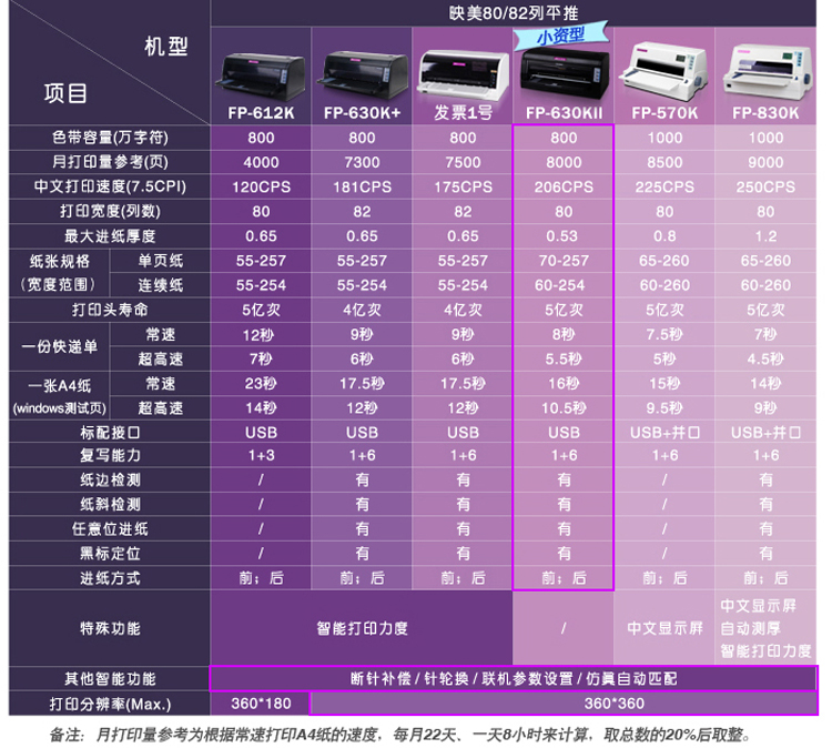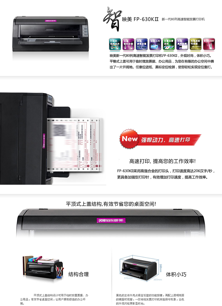 • 商品名称:映美(Jolimark)FP-630KII 80列平推针式打印机 快递单发票连打