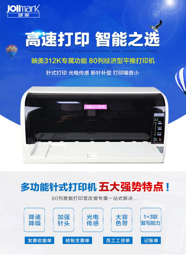 映美(Jolimark)FP-312K 前进纸式发票打印机 票据,单据打印高性价比