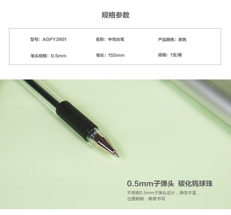 • 商品名称:晨光(M&G) AGPY3901 台笔中性笔T01 柜台可粘贴吧台笔 0.5mm 黑色