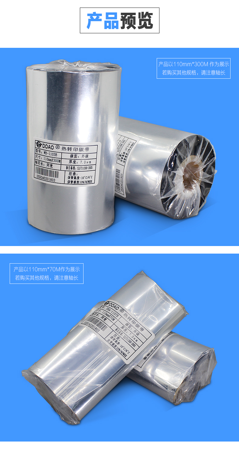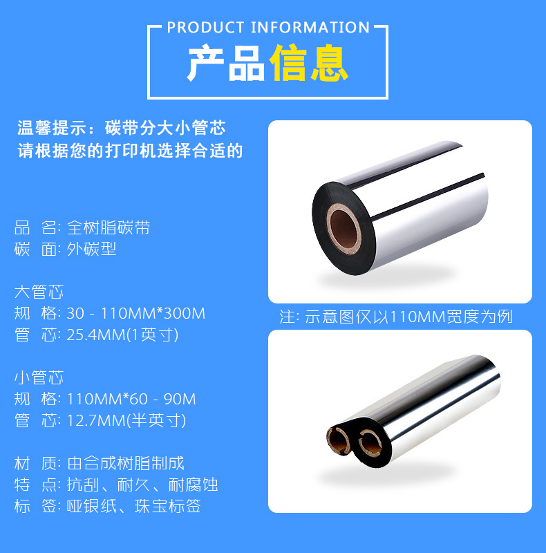 • 商品名称:安兴 树脂碳带 热转印碳带 打印清晰 防括不掉色碳带 (90*300)