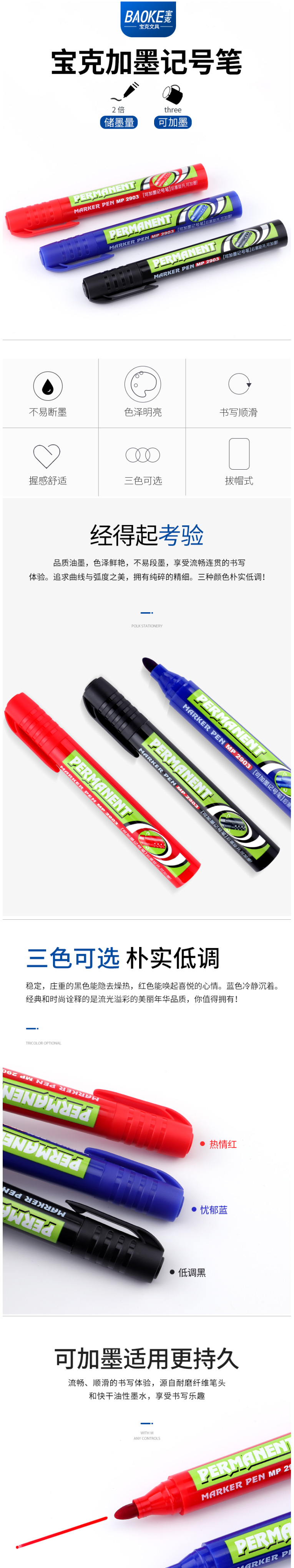 • 商品名称:宝克(BAOKE) MP2903A 可加墨粗头物流笔油性记号笔大头笔(蓝色)