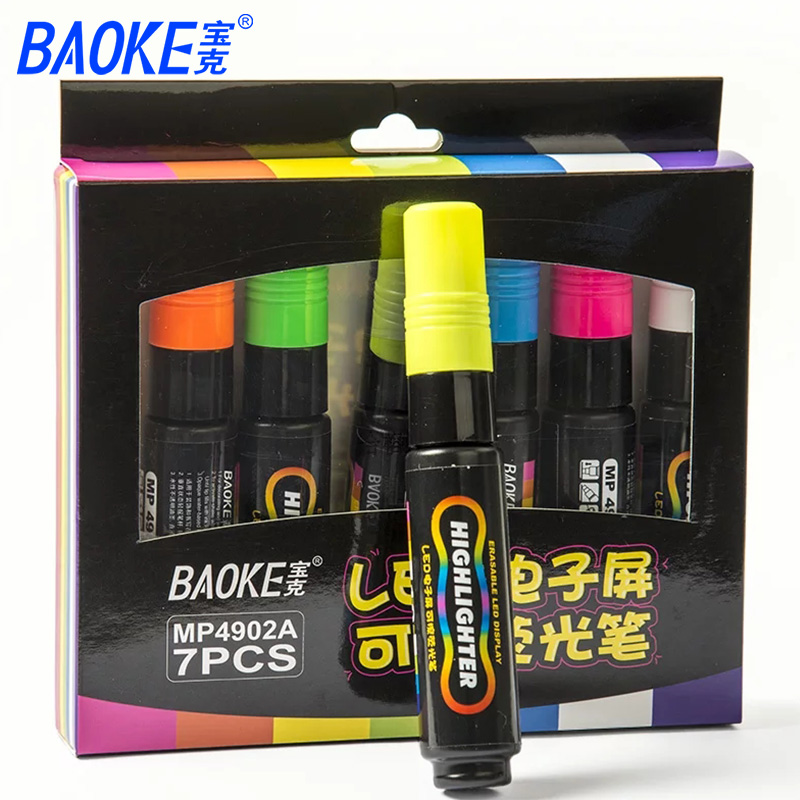 • 商品名称:宝克(BAOKE) MP4902 LED电子屏可擦荧光笔 平头 7色 彩色记号笔荧光板笔 (七色套装)