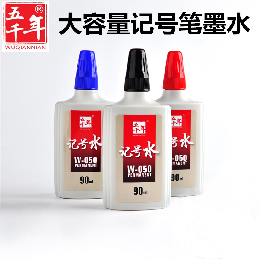 • 商品名称:五千年 W-050 记号笔墨水 记号笔墨水补充液可擦笔水 90ml大容量 20瓶/盒 (蓝色)