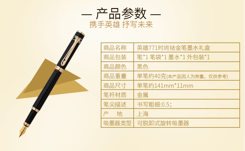 • 商品名称:英雄(HERO)771 铱金钢笔墨水礼盒 黑色