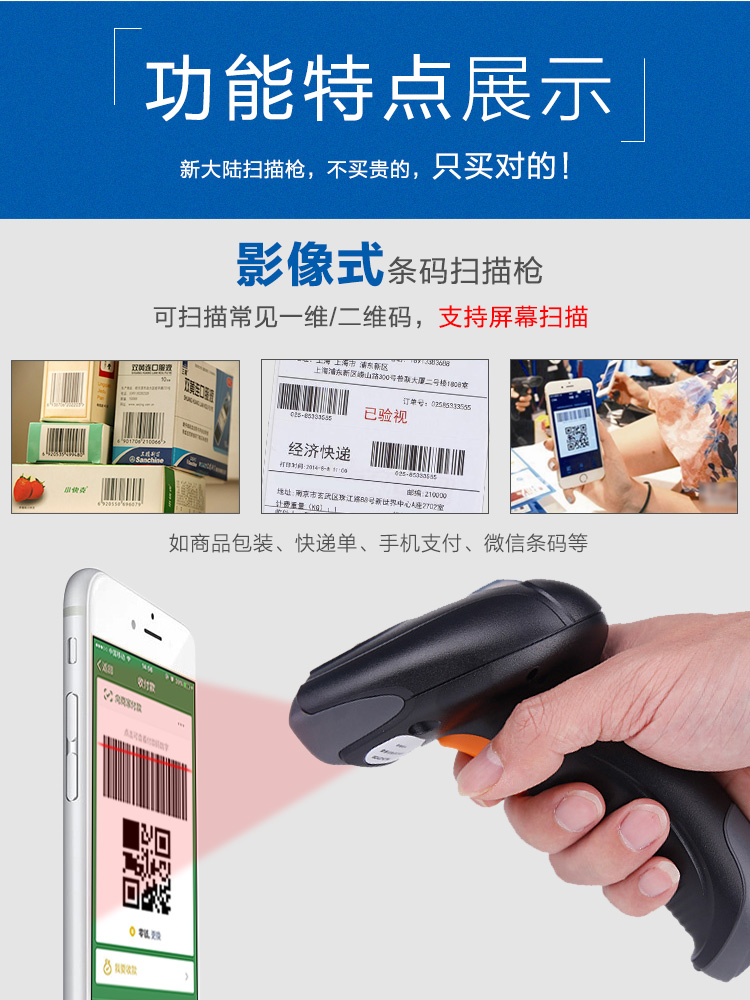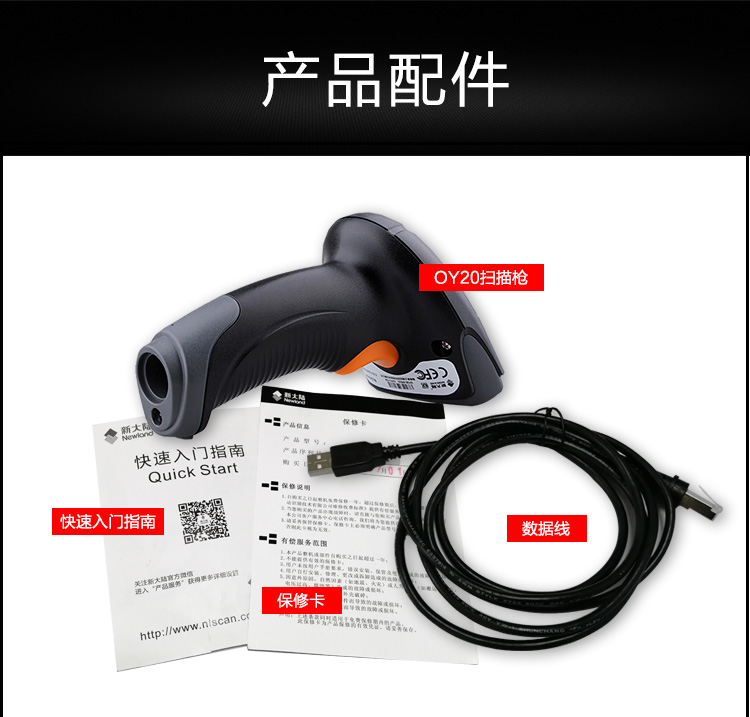 • 商品名称:新大陆(Newland) NLS-OY20 二维码扫描枪 条码扫码枪手机微信支付宝扫码器 有线超市快递扫描 USB接口