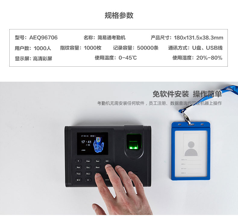 • 商品名称:晨光(M&G) AEQ96706 简易通指纹考勤机打卡机 指纹式签到机