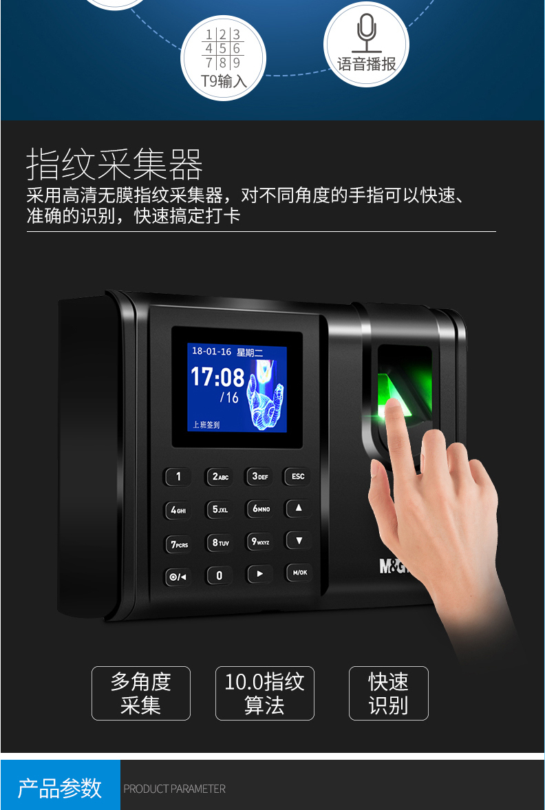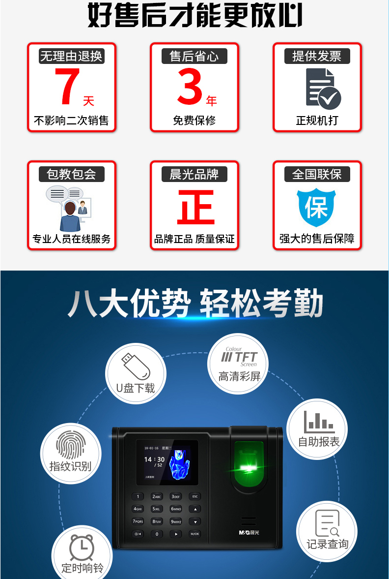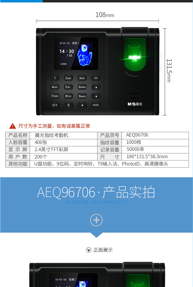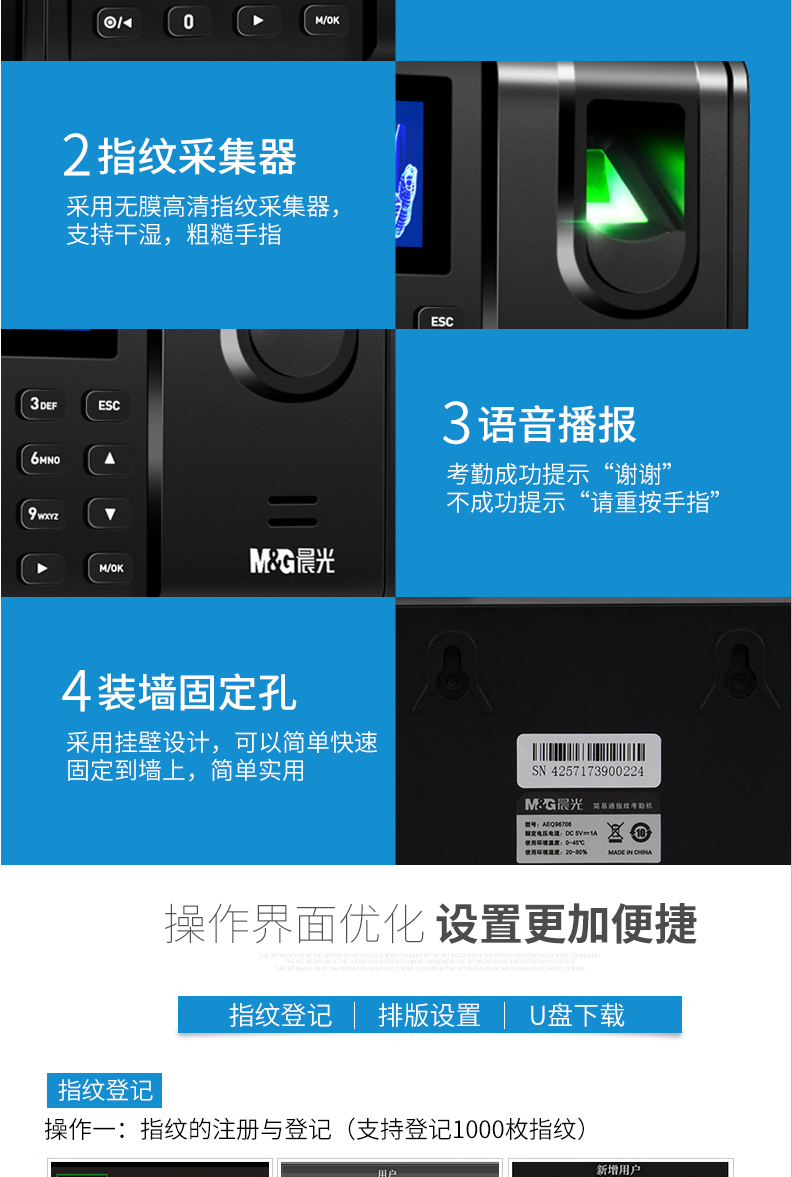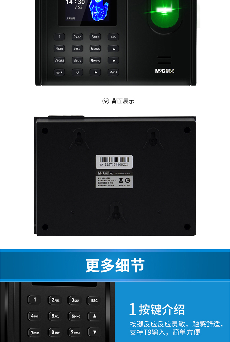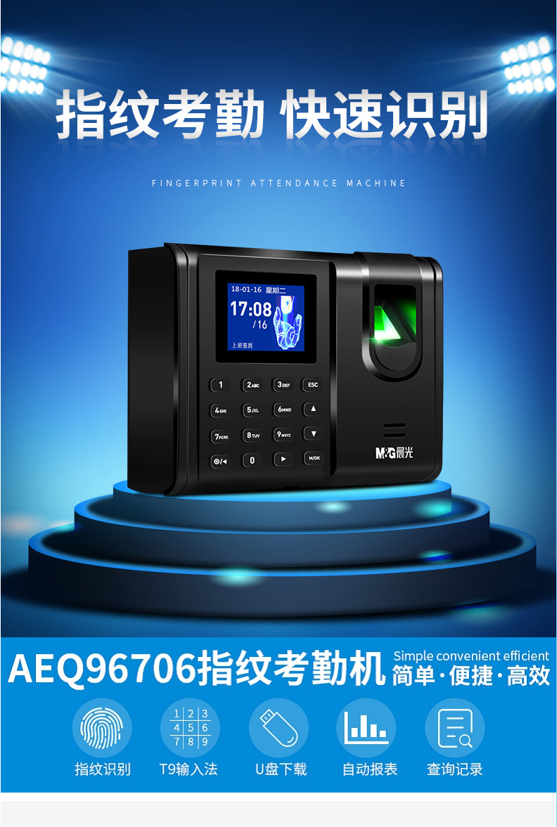 • 商品名称:晨光(M&G) AEQ96706 考勤机简易打卡机免安装指纹式签到机