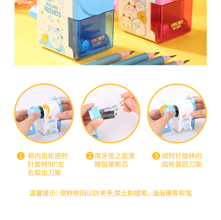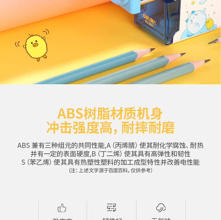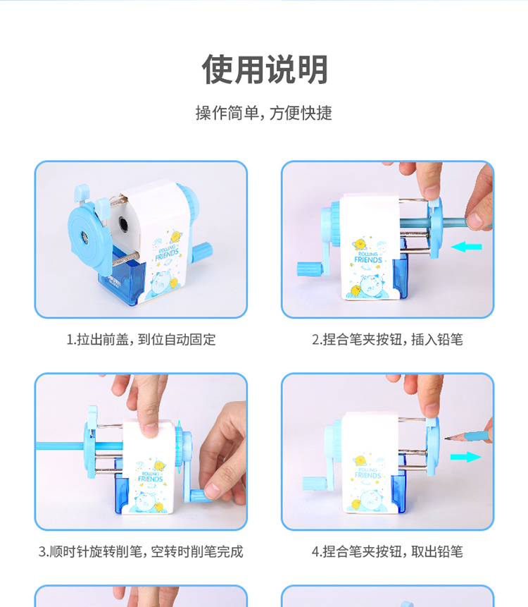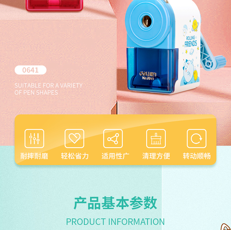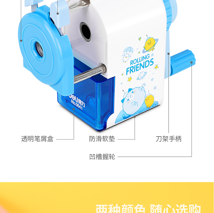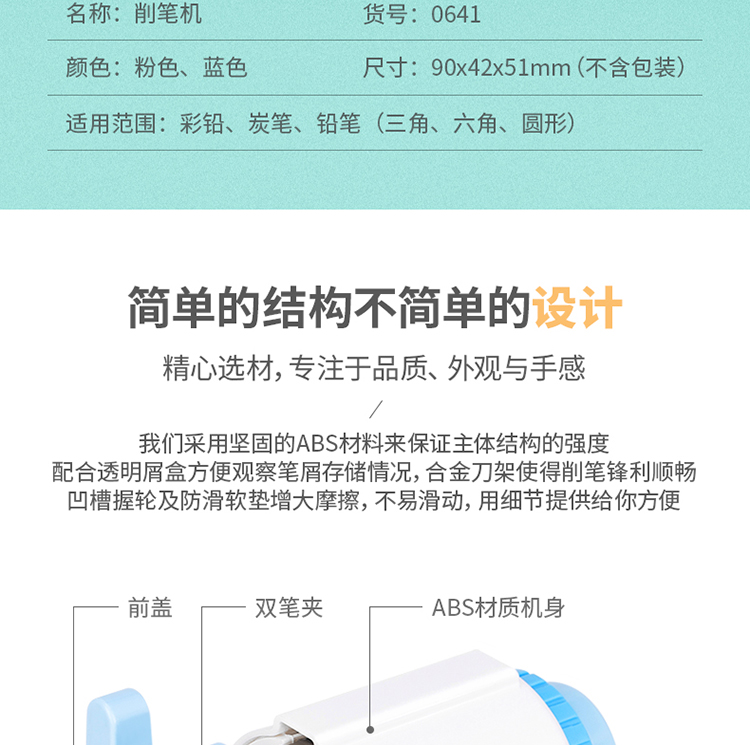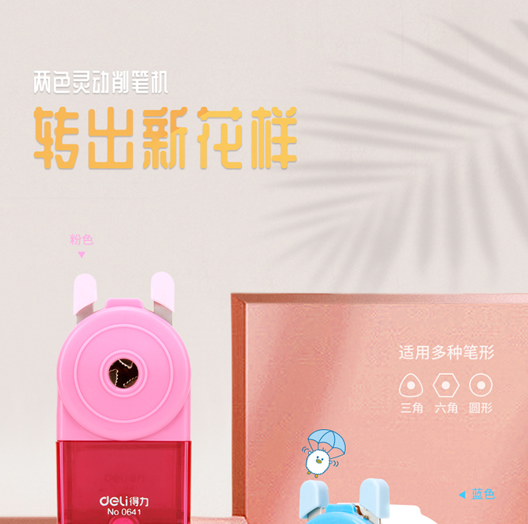 • 商品名称:得力(deli) 0641 简约学生削笔机/铅笔削笔器/卷笔刀/转笔刀 蓝色