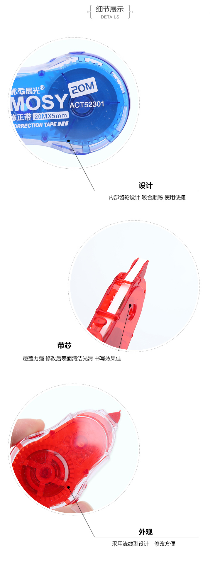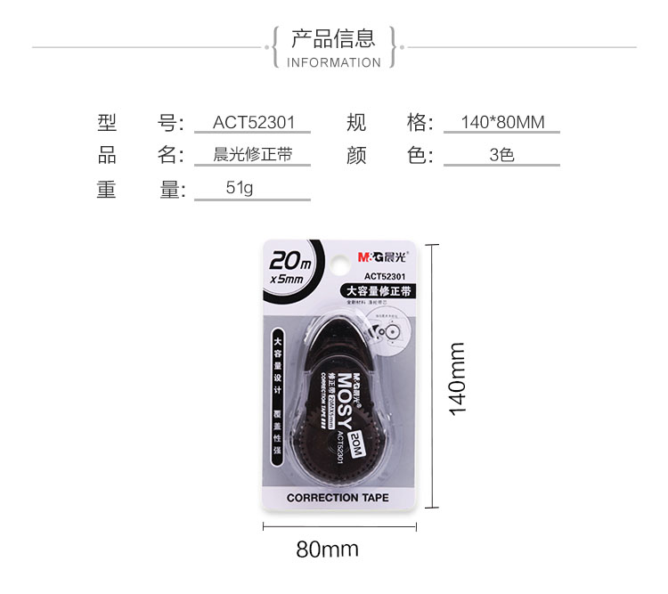 • 商品名称:晨光(M&G)ACT52301 时尚修正带 20m改正带涂改带 颜色随机