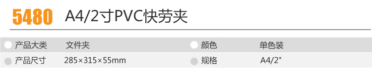 • 商品名称:得力(deli) 5480 A4/2英寸PVC快劳夹 黑色