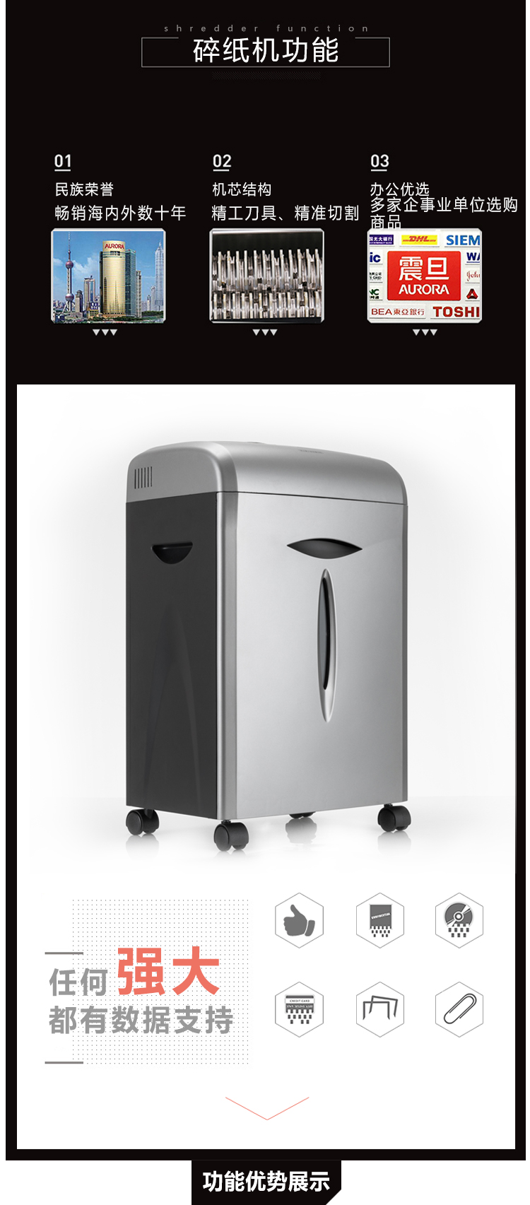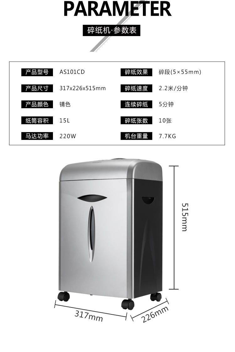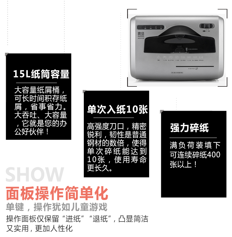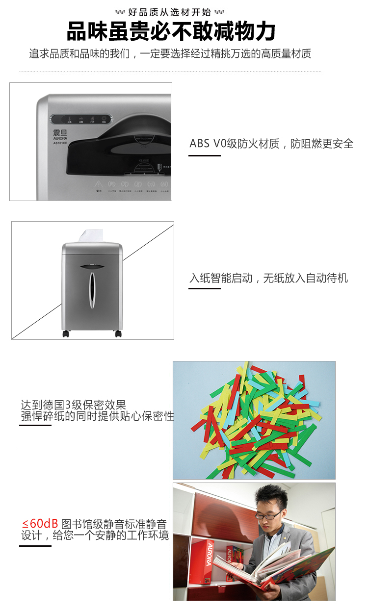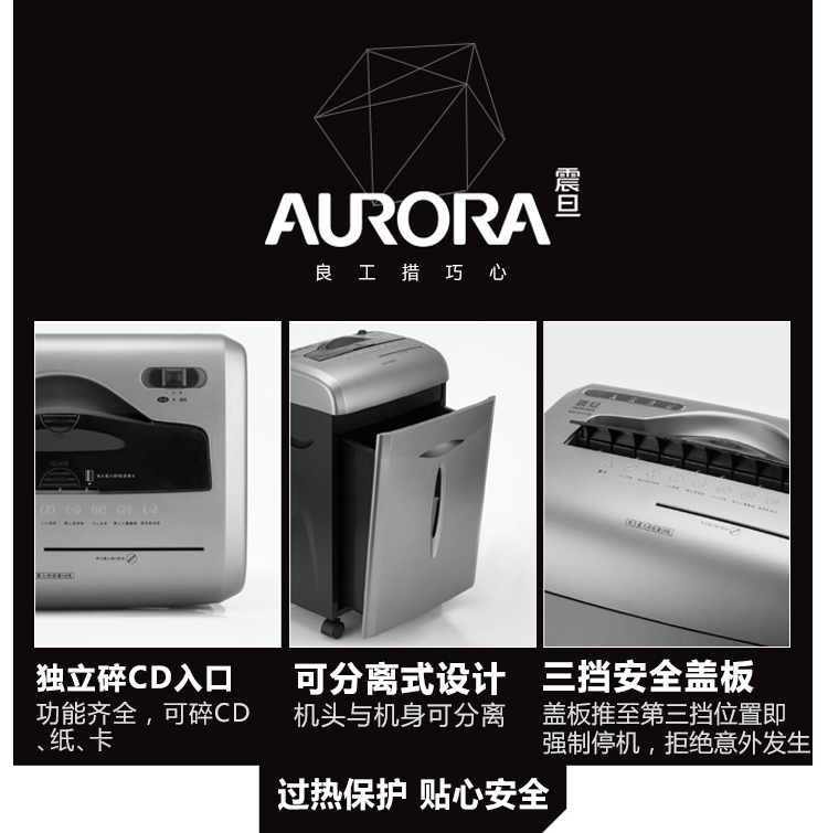 • 商品名称:震旦(AURORA)AS101CD 安全碎纸机 碎CD碎卡 3级保密 10张 5分钟 安全盖板静音