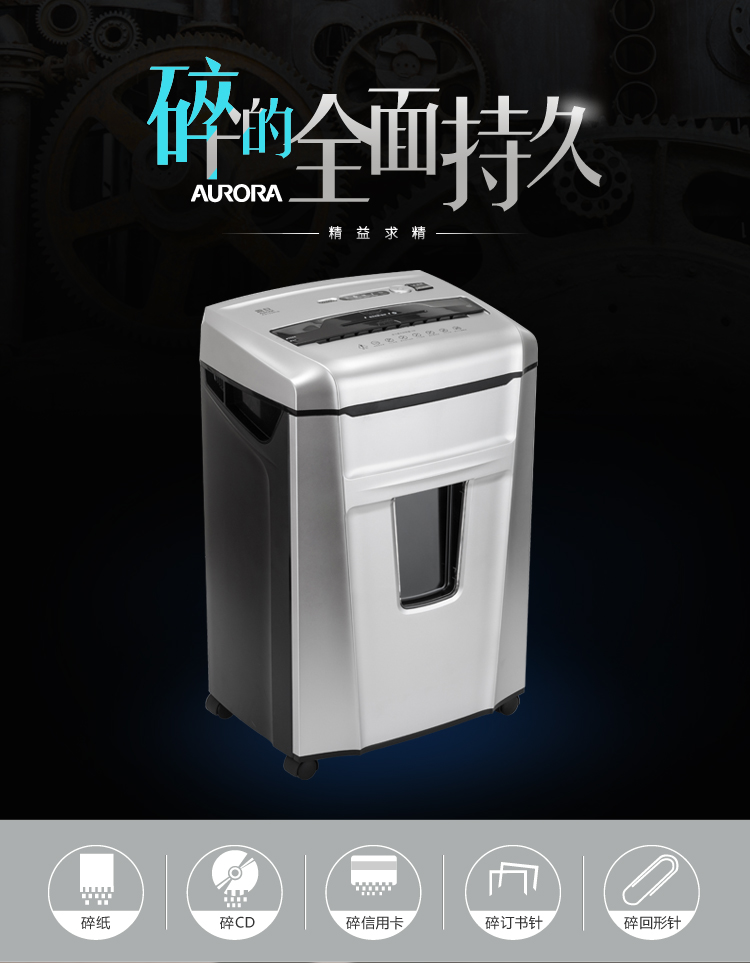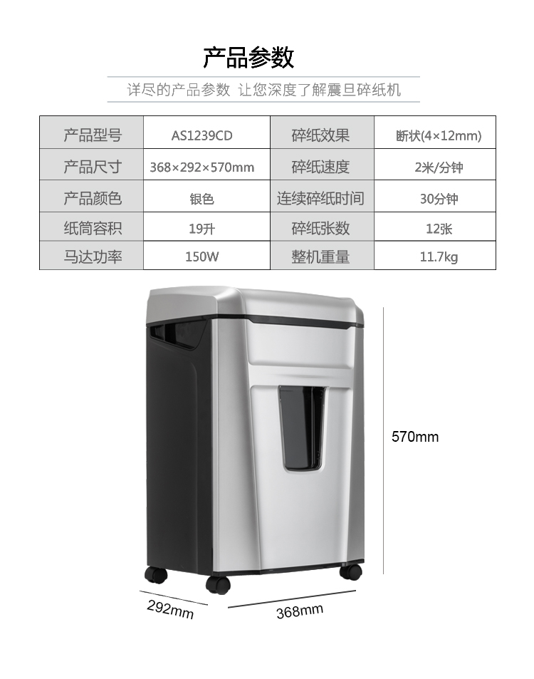 • 商品名称:震旦(AURORA)AS1239CD 大容量碎纸机 4级保密 12张 30分钟 碎CD碎卡静音