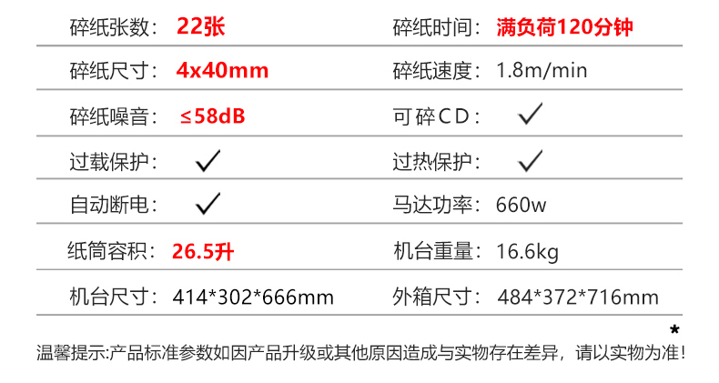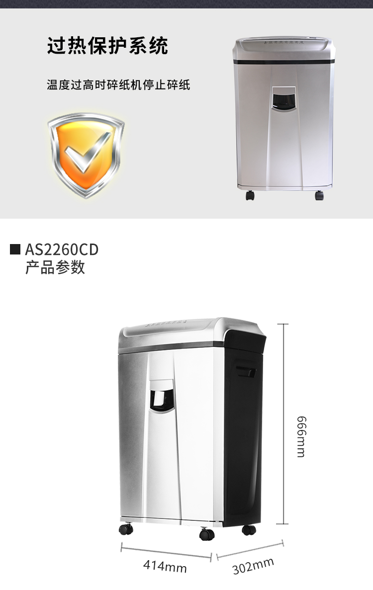 • 商品名称:震旦(AURORA)AS2260CD 大容量碎纸机 4级保密 22张 120分钟 碎CD碎卡静音