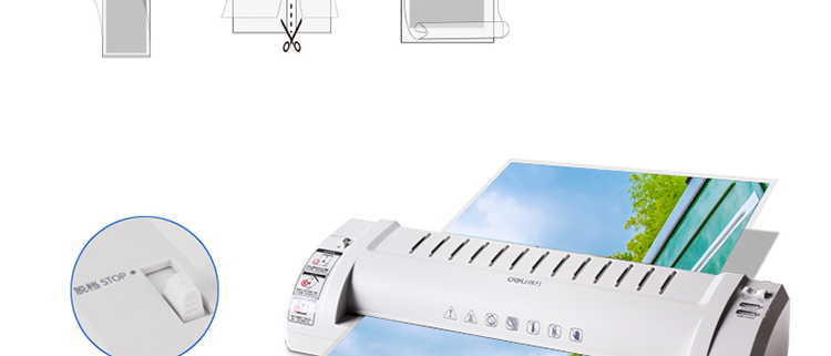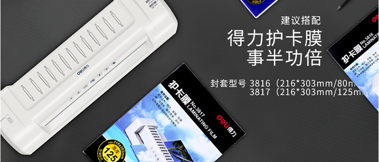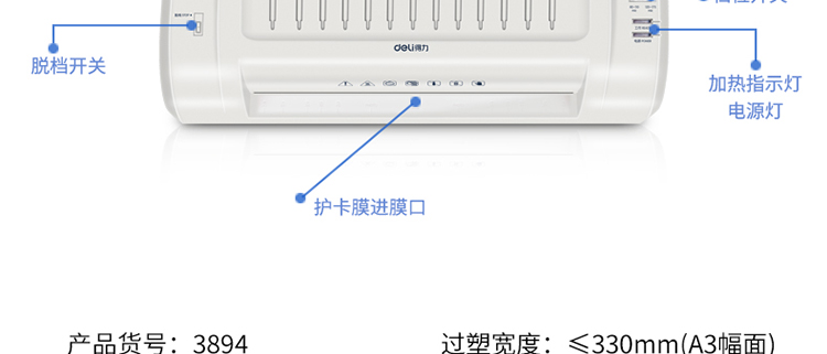 • 商品名称:得力(deli)3894 适用A3时尚专业静音型塑封机/过塑机 银灰