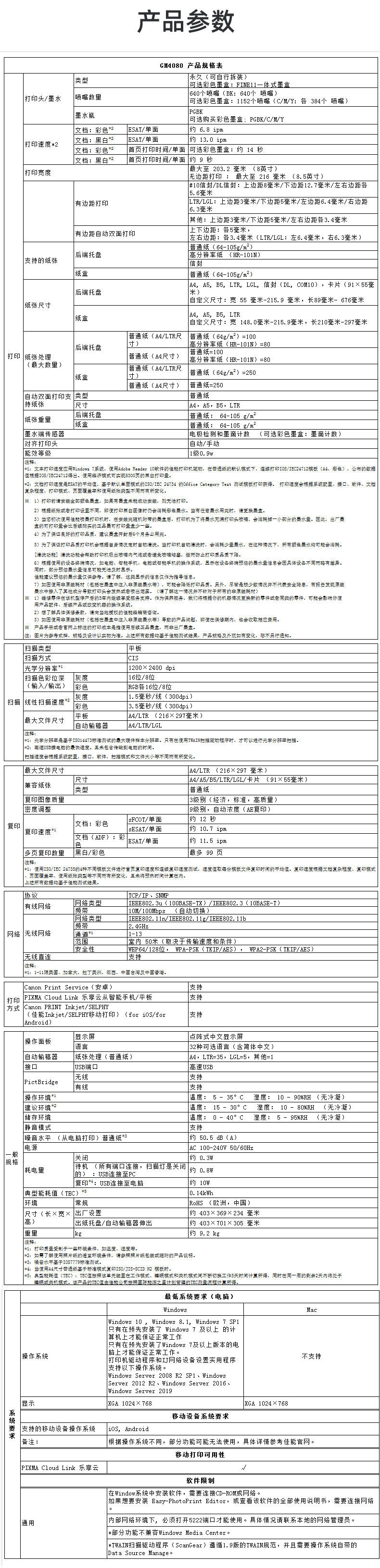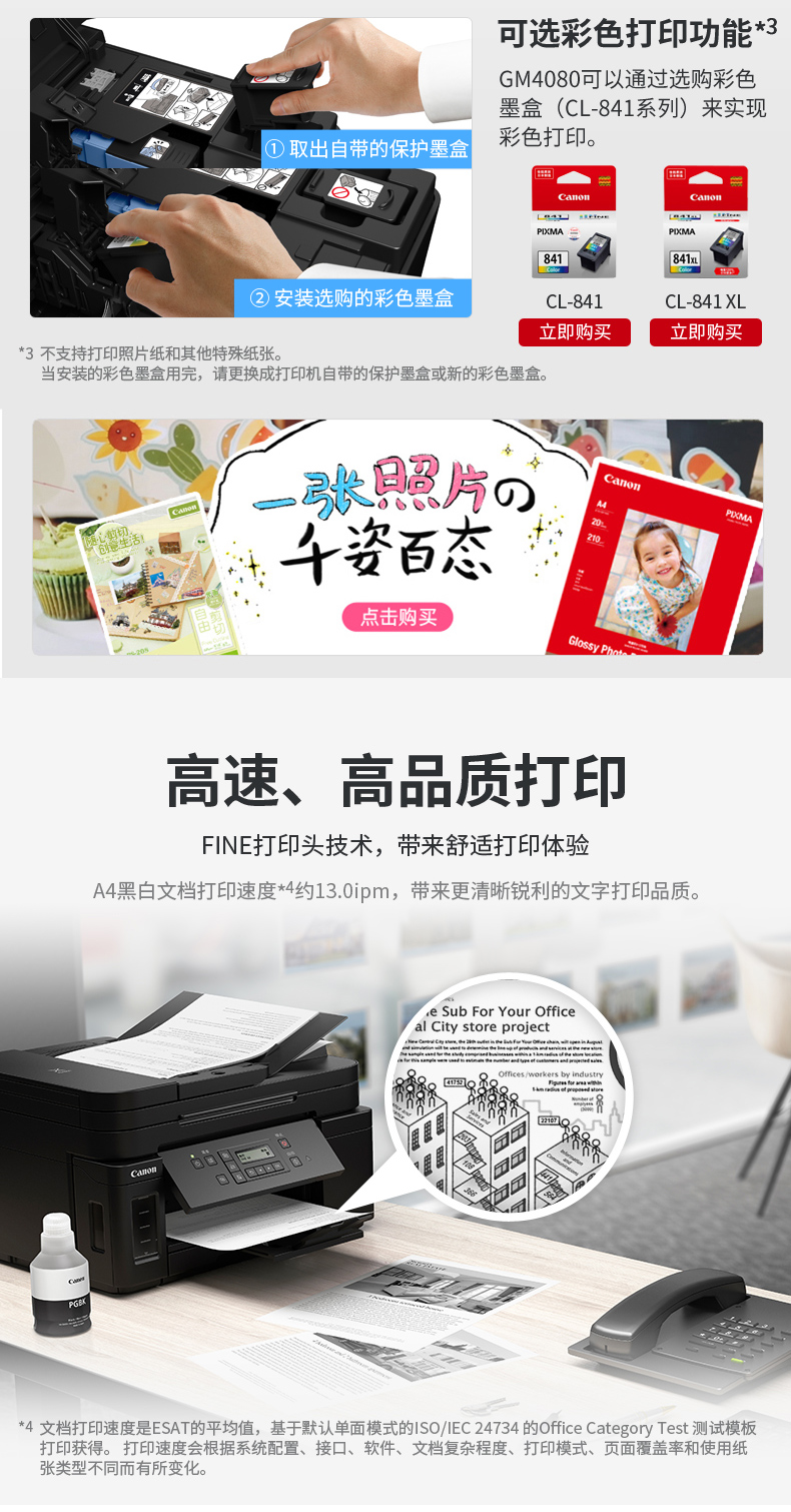 • 商品名称:佳能(Canon)GM4080 A4黑白喷墨多功能一体机 标配