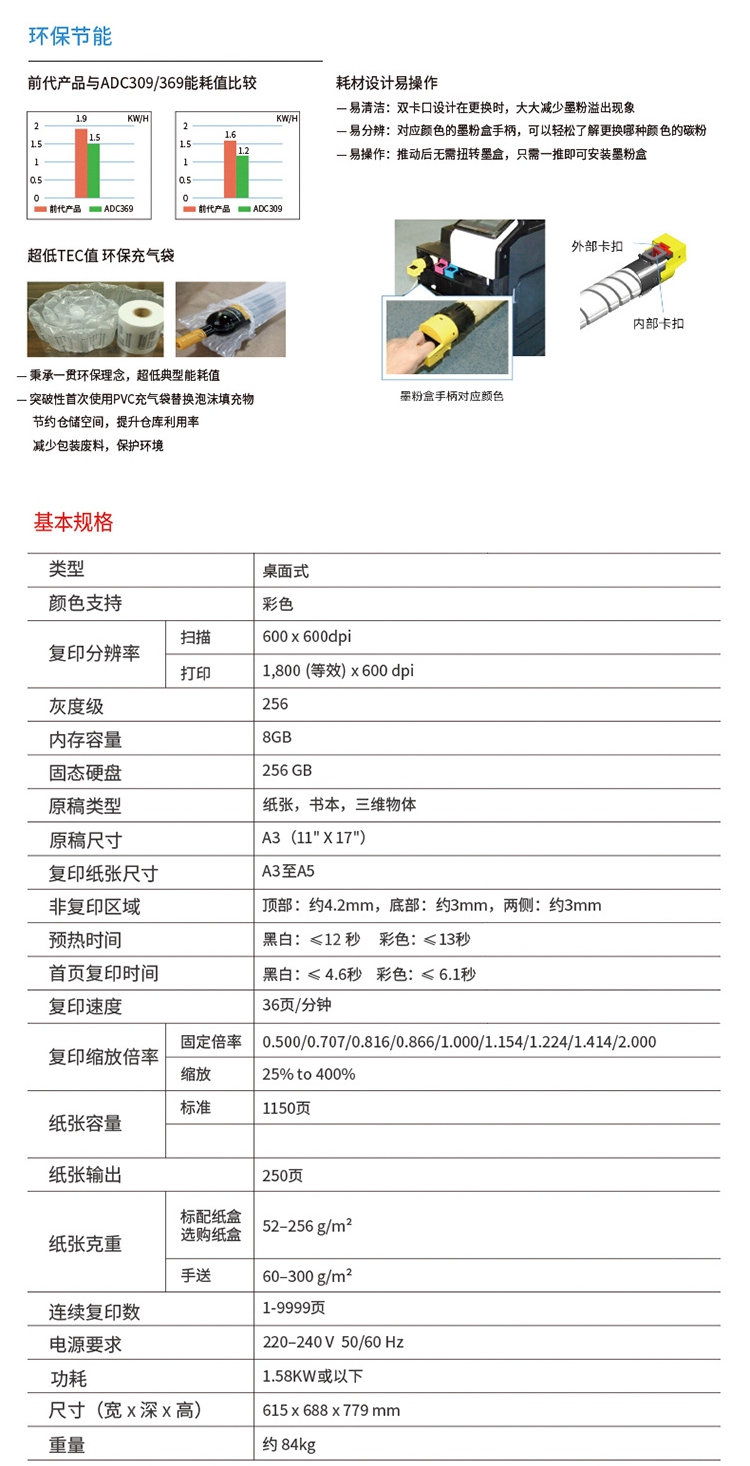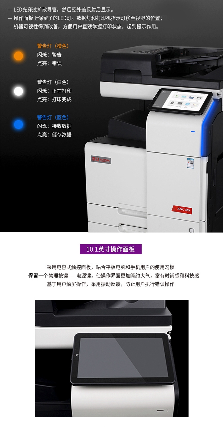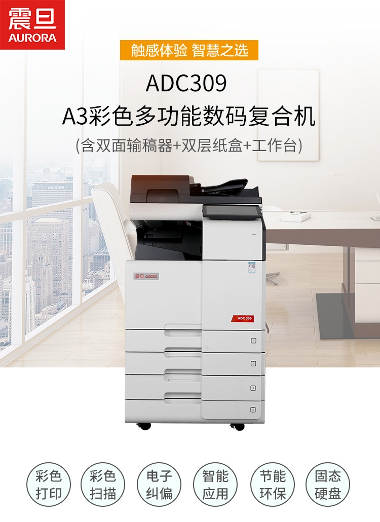 • 商品名称:震旦(AURORA)ADC309 A3彩色多功能数码复合机(含双面输稿器+双层纸盒+工作台)