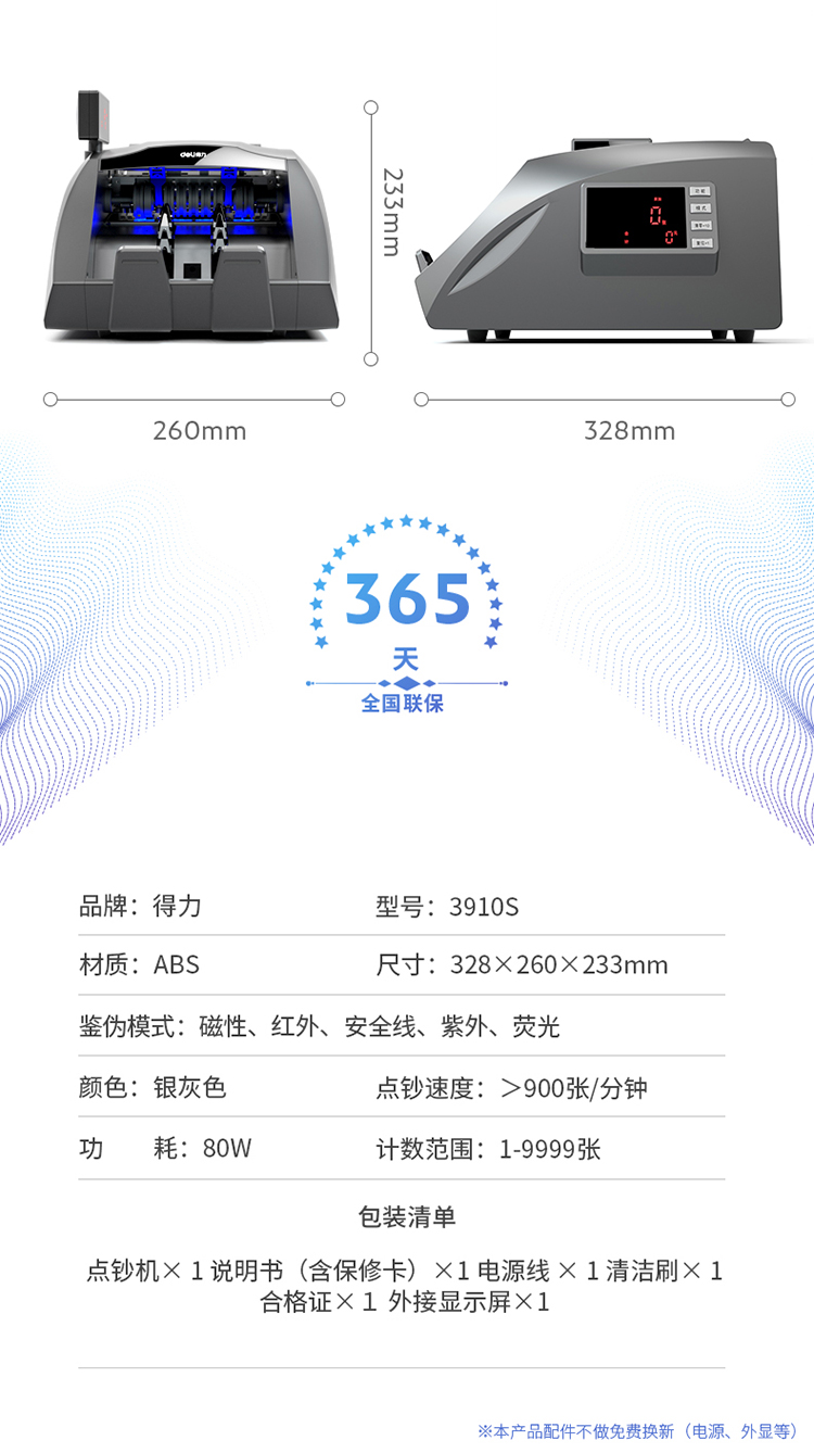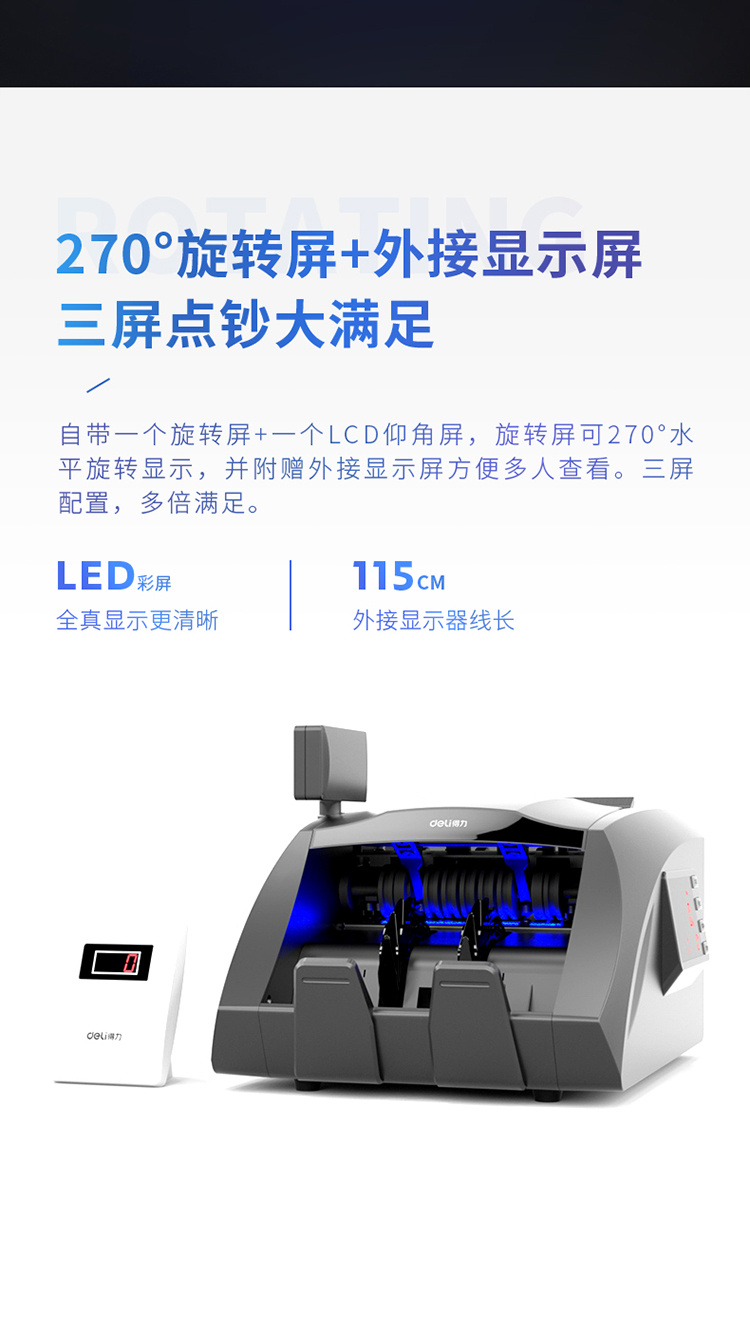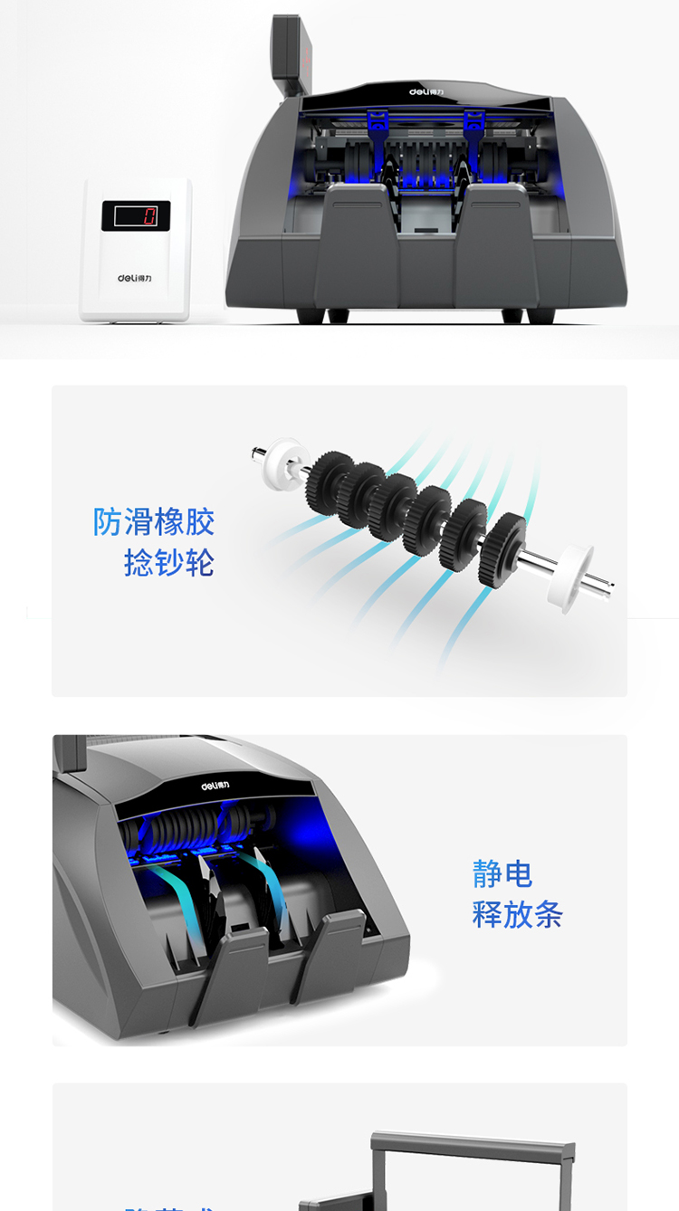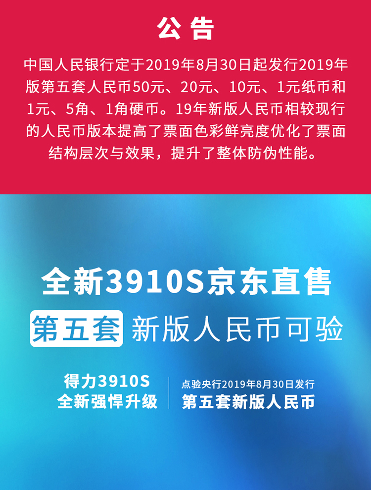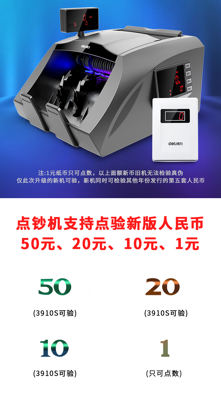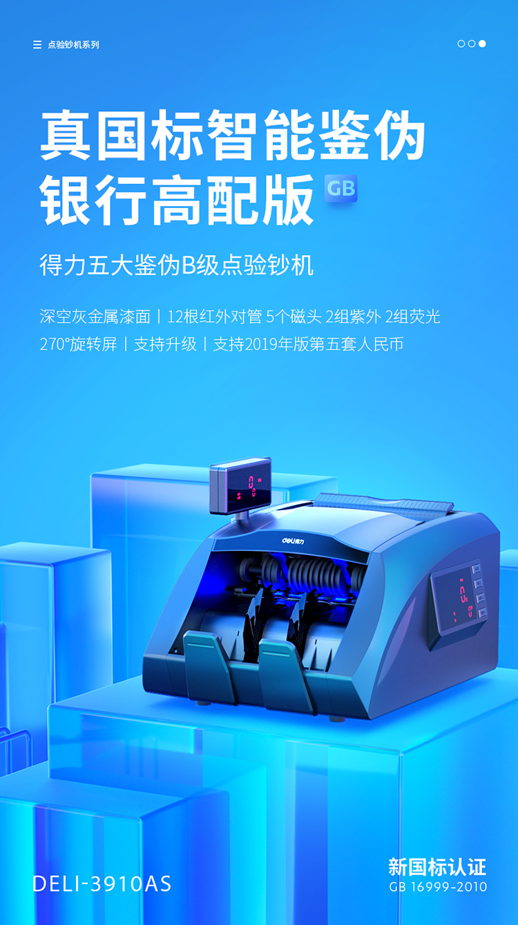 • 商品名称:得力(deli))3910A 2019年新版人民币点钞机验钞机 银行专用国标B类 三屏语音数钱机