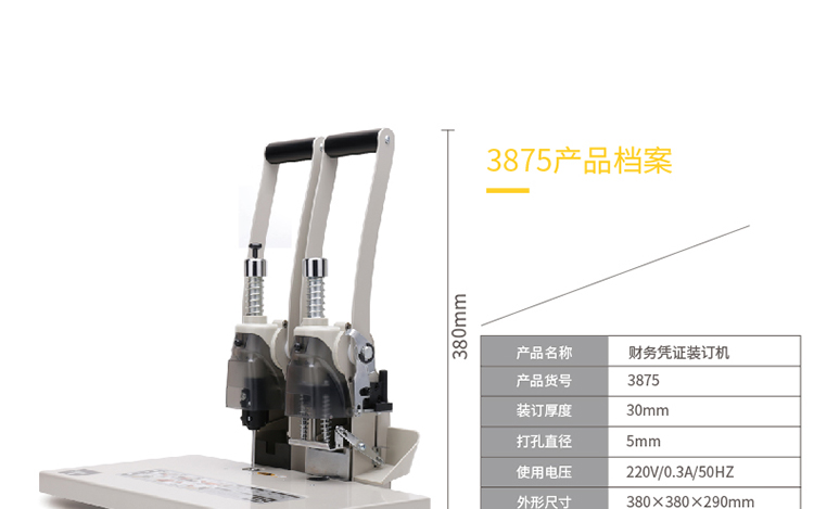 • 商品名称:得力(deli)3875 凭证单据装订机财务档案打孔机