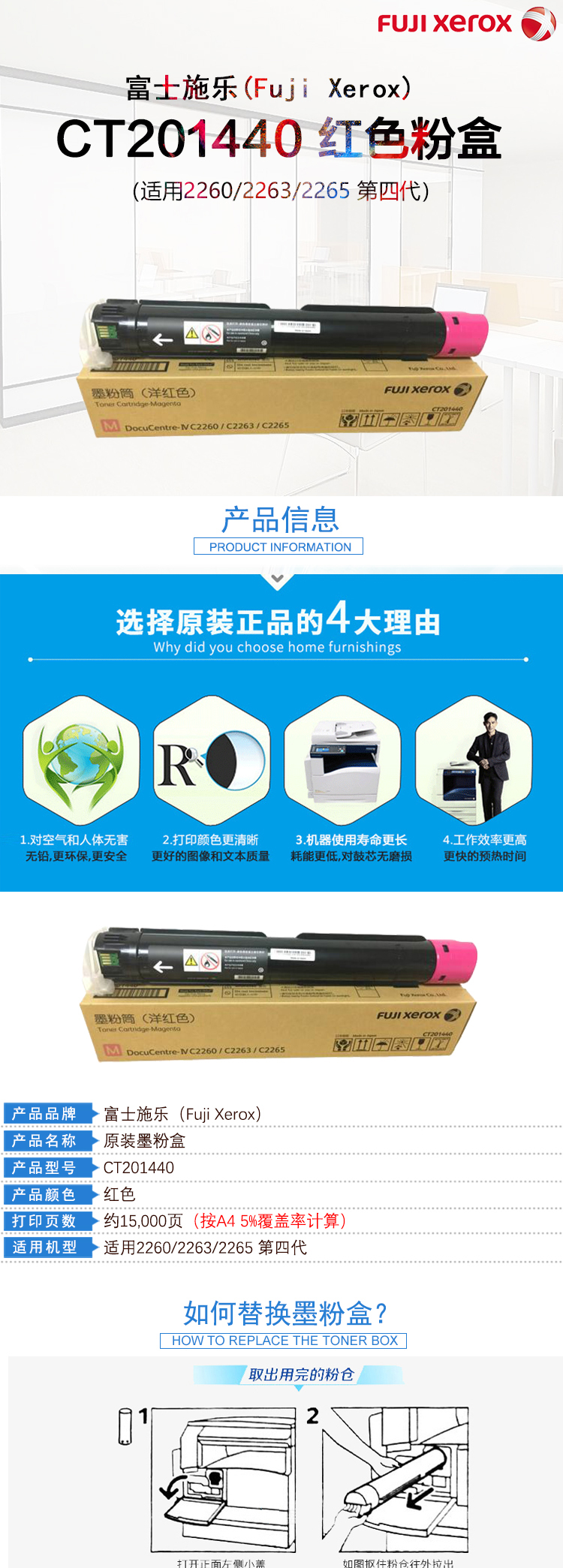 • 商品名称:富士施乐(Fuji Xerox)CT201440 红色粉盒 适用施乐2260/2263/2265 第四代