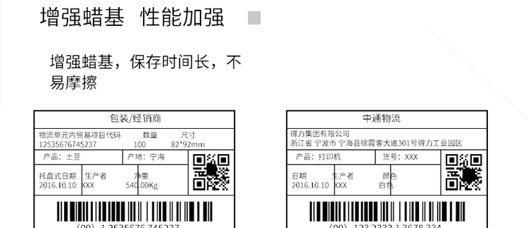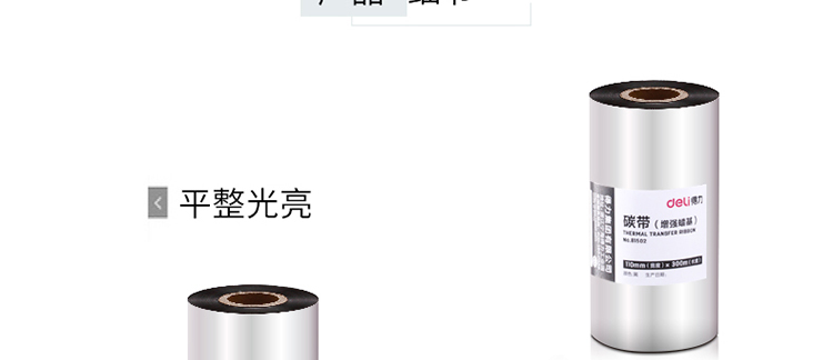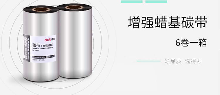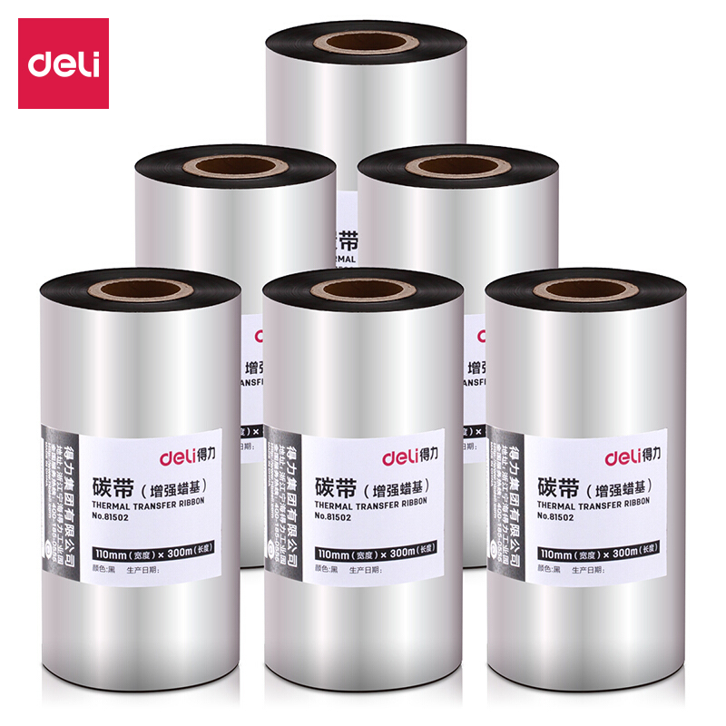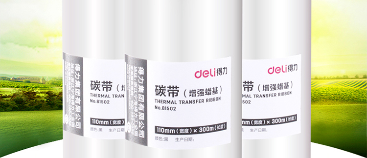 • 商品名称:得力(deli)81502 条码打印机碳带110mm*300m 热转印打印机耗材标签打印机碳带