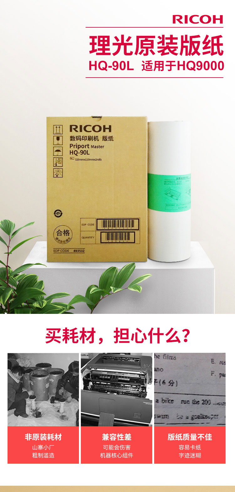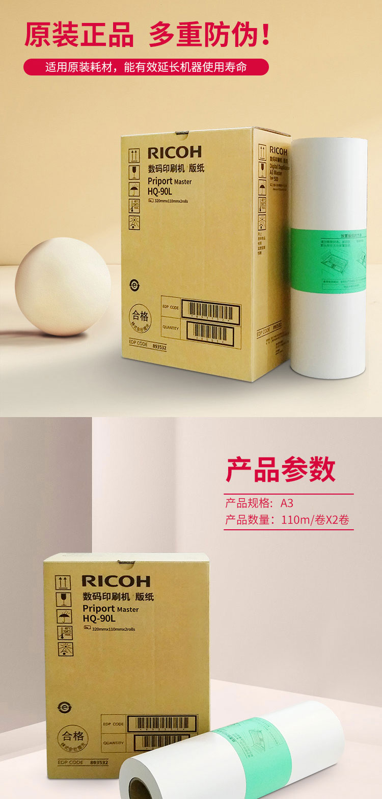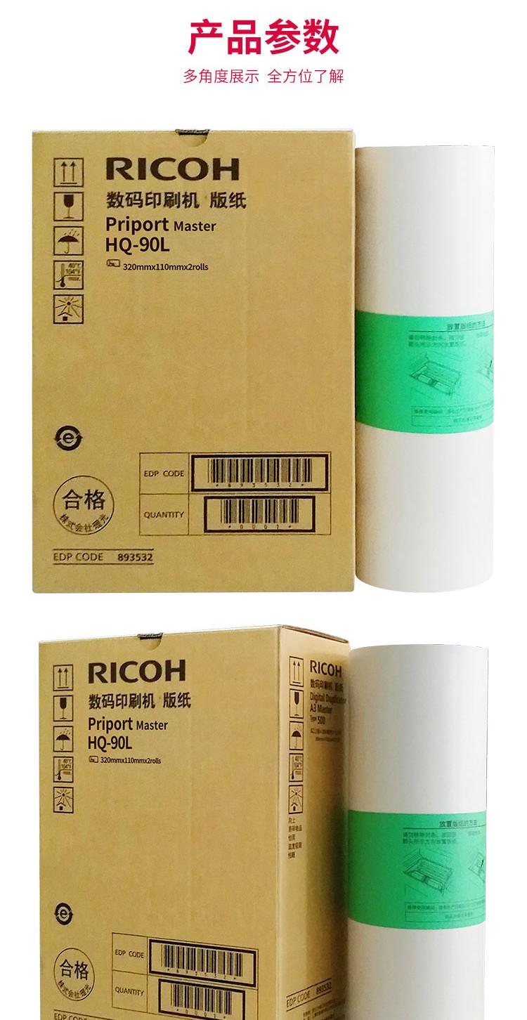 • 商品名称:理光(Ricoh)HQ90L(110m/卷*2卷) 版纸 适用于HQ9000