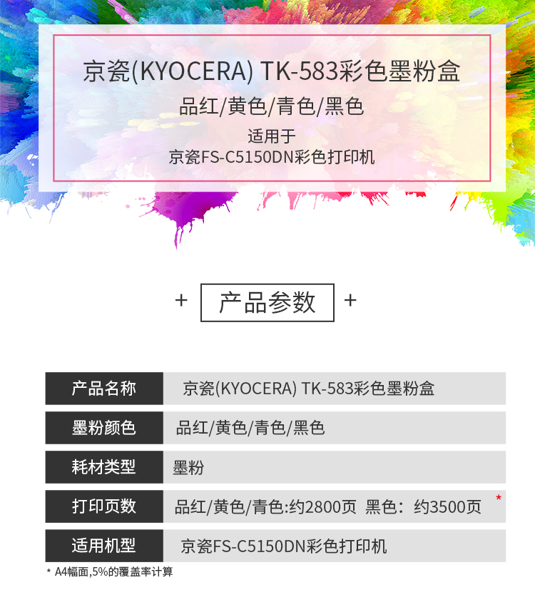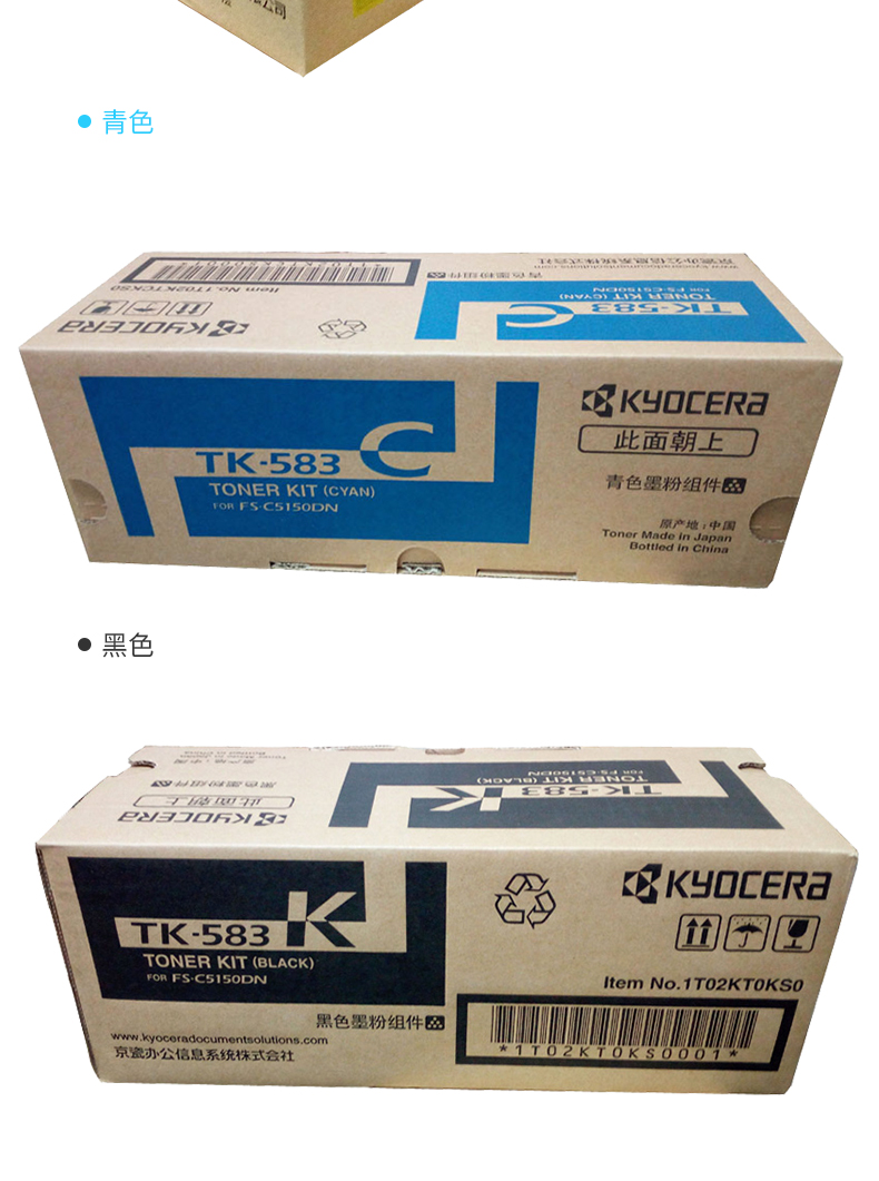 • 商品名称:京瓷(KYOCERA)TK-583C 青色碳粉墨粉 适用于京瓷FS-5150DN 约2800页