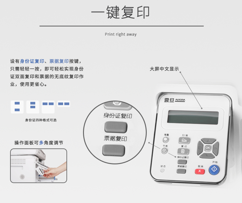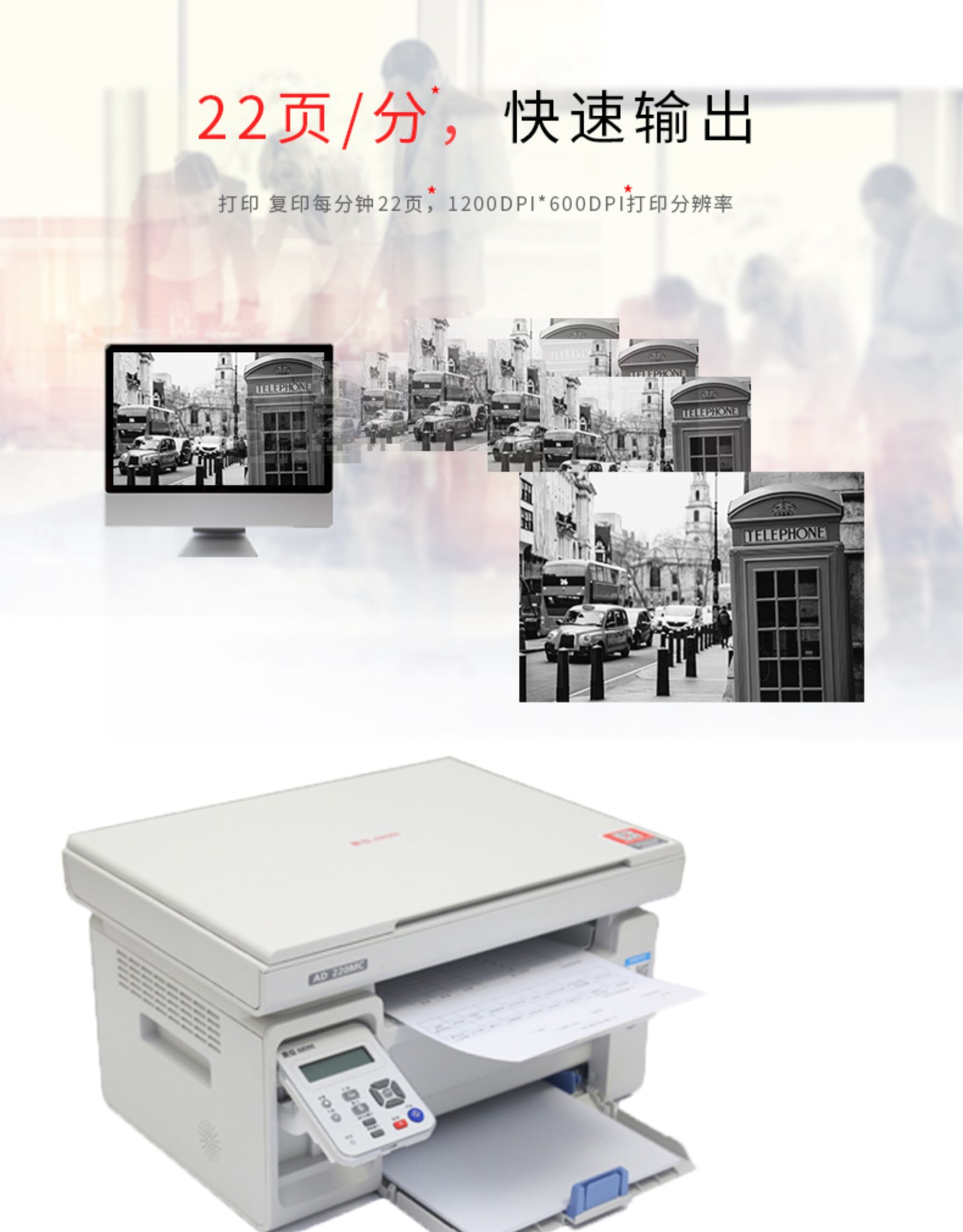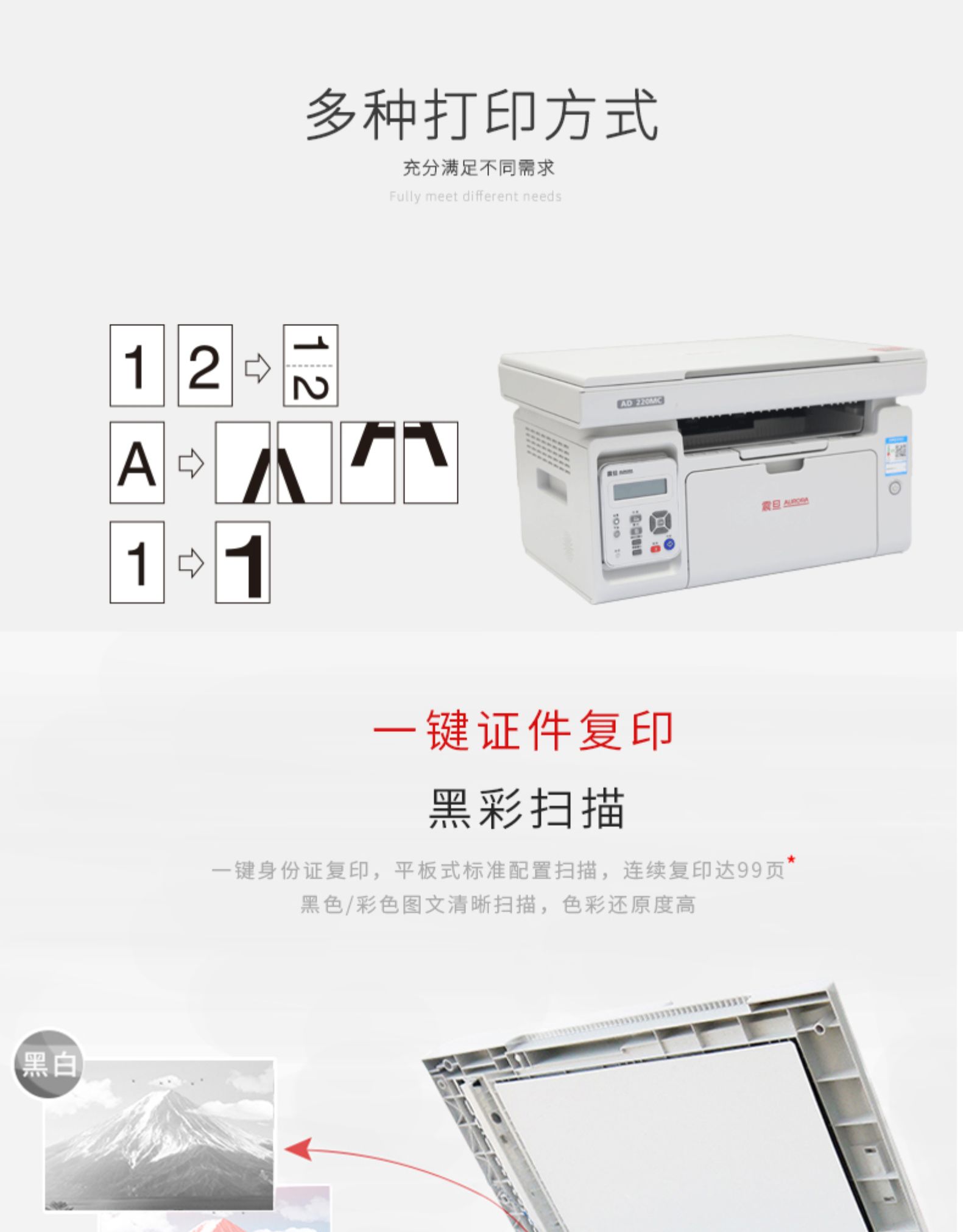 • 商品名称:震旦(AURORA) AD220MC A4黑白多功能一体机 打印复印扫描三合一