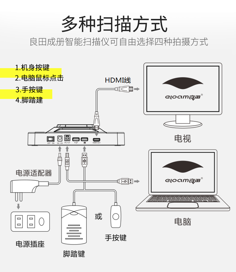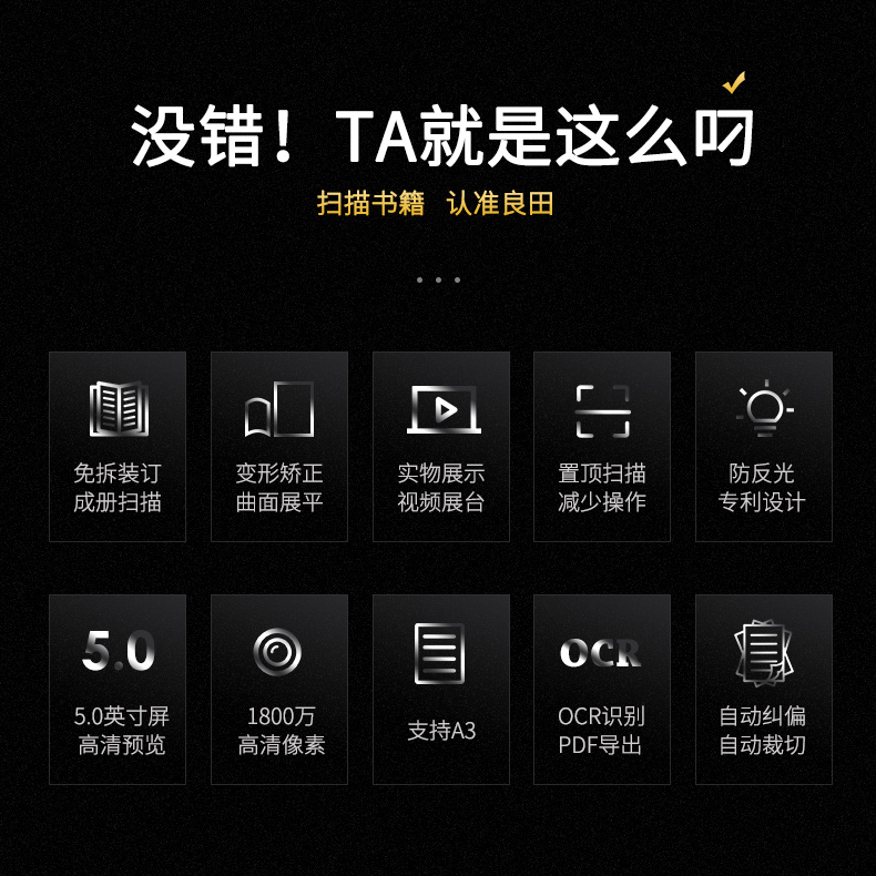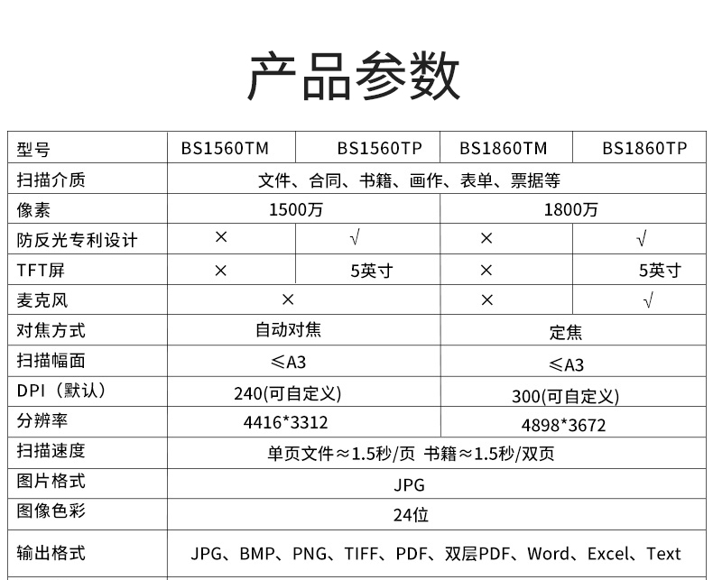 • 商品名称:良田(eloam) BS1560TP 高拍仪 1500万像素 带屏幕 高速扫描文档免拆高清零边距视频展台